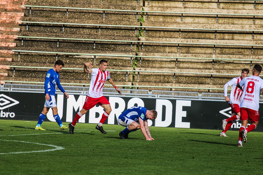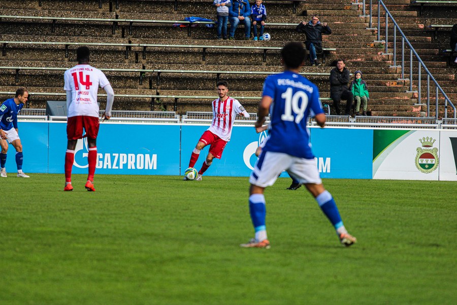 In der 57. Minute wurden die Schalker erstmals in der zweiten Hälfte vor dem Tor der Kölner gefährlich. Von der rechten Seite flankte der Schalker hinter der Kölner Abwehr zentral in den Sechzehner. Doch der Ball fand keinen Abnehmer und landete im Toraus. Im weiteren Spielverlauf waren die Kölner weiter am Drücker und dominierten im Ballbesitz, konnten ihre Torchancen jedoch nicht sauber verwerten. In der 72.Minute nah Trainer Alexander Ende einen Doppelwechsel vor. Für Owusu und Hölscher kamen Harnafi und Batarilo ins Spiel, die frischen Wind bringen und zum lang ersehnten Tor verhelfen sollten. Kurz nach der Einwechslung konnte Harnafi den Ball für sich gewinnen und lief in die tiefe Hälfte der Schalker. Er legte auf Batarilo ab, der den Schuss aufs Tor versuchte (75.Minute). Im weiteren Verlauf der Partie kam für Försterling Ubabuike auf den Platz. Kurz nach dem Wechsel erkämpften sich die Schalker einen seltenen Ballbesitz und liefen in die Kölner Hälfte vor. André Weis ging zum Ball und brachte den Schalker Spieler im Sechzehner unglücklich zu Fall. Der Schiedsrichter zeigte auf den Elfmeterpunkt. Der Elfmeter saß und Dadashov brachte die Schalker mit 1:0 in Führung (80.Minute). Doch die Kölner gaben nicht auf und hielten auch weiterhin ihren Ballbesitz Anteil sehr hoch. In der 88. Minute konnte sich Najar im Gewusel im Schalker Sechzehner durchsetzen, schob den Ball flach in die rechte Ecke des Tors und glich aus.