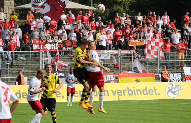 Mit einem 2:0-Erfolg bei der U23 von Borussia Dortmund sichert sich die Fortuna wichtige Punkte für den Klassenerhalt. Vor 1.063 Zuschauern im Stadion Rote Erde markierte Johannes Rahn die beiden Kölner Treffer. Durch den Auswärtssieg überholen die Kölner das Dortmunder Nachwuchsteam und klettern nach vier Spieltagen wieder auf einen Nichtabstiegsplatz. Dabei zeigten sich die Kölner zu Beginn des Spiels als das präsentere Team, ehe Mitte der ersten Halbzeit die Dortmunder stärker wurden. Die größte Chance zur Führung hatte aber die Fortuna, als Dahmani kurz vor der Pause den Ball im leeren Tor nicht unterbringen konnte (43.). Besser machte es zu Beginn der zweiten Halbzeit Rahn, der nach einem Ballgewinn von Andersen BVB-Keeper Alomerovic umkurvte und ins leere Tor einschoss (53.). Dortmund zeigte sich in der Offensive zu harmlos, um Fortuna-Schlussmann Poggenborg ernsthaft in Gefahr zu bringen. Vielmehr hatten die Kölner aussichtreiche Kontermöglichkeiten zur Vorentscheidung. Eine davon stoppte BVB-Kapitän Hornschuh regelwidrig mit einer Notbremse gegen Rahn, die Schiedsrichter Thorsten Schriever folgerichtig mit Rot bestrafte (74.). In der Schlussphase gelang Rahn nach Vorarbeit von Kraus schließlich die endgültige Entscheidung in der Partie: Dabei schoss der Kölner den Ball aus 25 Metern Entfernung sehenswert über Alomerovic ins Tor (90.). Weiter geht es für die Fortuna bereits am kommenden Mittwoch. Dann gastiert Hansa Rostock im Südstadion.