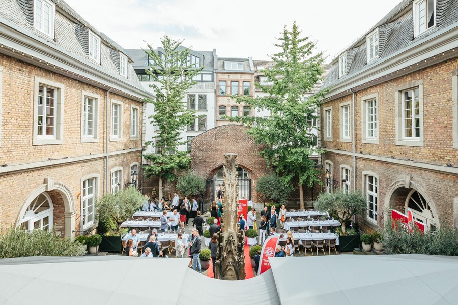 Um 11 Uhr startete der Einlass in eine der schönsten Locations in Köln. Im ehemaligen Kloster in der Kölner Altstadt-Süd hießen Benjamin Bruns und Rudolf von Borries rund 300 Gäste willkommen. In einem schönen Ambiente tauschten sich die Partnerinnen und Partner ausgiebig aus und wurden stets bestens versorgt. Mit Getränken von der Weinmanufaktur Christian Schardt, der Haaner Felsenquelle und der Privatbrauerei Gaffel blieb keiner der Gäste durstig. Auch das Grillbuffet, mit den Produkten der Hardy Remagen GmbH fand sehr guten Anklang. Für Gebäck und Kuchen sorgte die Bäckerei Schmitz Nittenwilm. Ein besonderer Dank gilt auch an unseren Fotografen Martin Scherag für die fantastischen Fotos, der das Event stets wie ein Schatten begleitete. Für dauerhaft gute Stimmung sorgte auch der DJ Ralph Rosenbaum, bei welchem wir uns ebenfalls bedanken möchten.