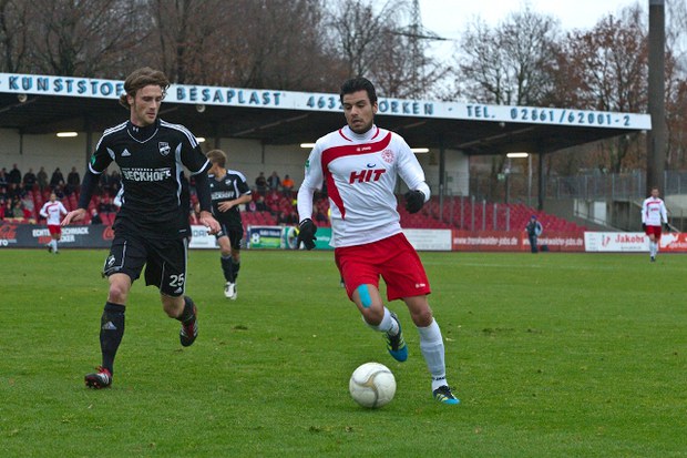 (Mittelfeldspieler Ozan Yilmaz im Zweikampf mit dem Verler Julian Schmidt, Foto: Gert König)