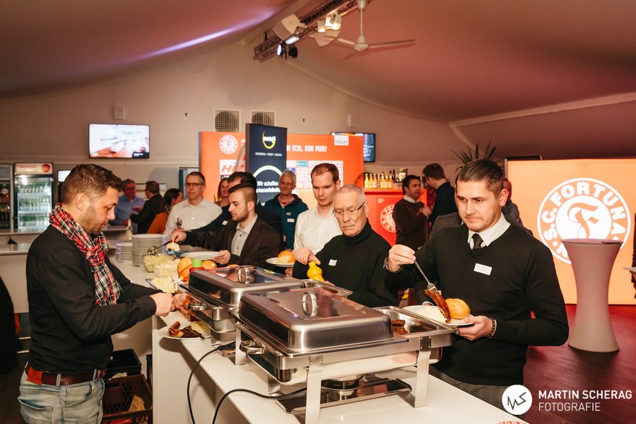 Mehr als 50 Sponsoren nutzten die Chance und lernten in lockerer Atmosphäre die Unternehmen im Fortuna Netzwerk intensiver kennen. In rotierenden zwei-minütigen Gesprächsrunden, stellten sich die anwesenden Vertreter der Fortuna-Partner sich und ihr Unternehmen vor und knüpften so weitere Kontakte.