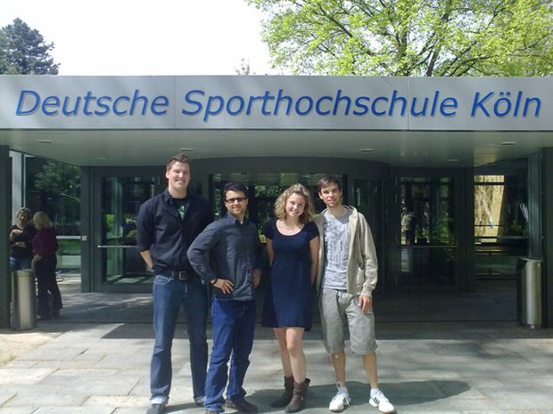 Im Oktober 2009 starteten die deinfussballclub.de DFC GmbH, die Kölner Agentur B.A.N.G und die Deutsche Sporthochschule eine ungewöhnliche Kooperation. Aufgerufen waren die Studenten der DSHS, sich mit ungewöhnlichen Konzepten um die Sponsorenakquise des NRW-Ligisten Fortuna Köln verdient zu machen. Gleich 60 Bewerber zeigten Interesse. Eine Studentin und drei Studenten überzeugten die Vertreter der drei Kooperationspartner am meisten. Und so steigen Michael Bode, Ben Linden, Sina Hoffmann und Fynn Brestel (von links) ab sofort in die Sponsorenakquise der Fortuna Köln Spielbetriebsgesellschaft mbH ein.