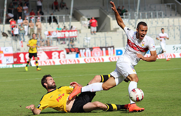 Wie kein anderes Team der 3. Liga findet die U23 des VfB Stuttgart dabei in dieser Saison Unterstützung von Akteuren aus der ersten Mannschaft: In der Hinrunde tauchten die Namen Holzhauser, Ginczek und Sararer des Öfteren auf dem Aufstellungsbogen auf. Im Jahr 2015 sind das nun die Namen Abdellaoue, Haggui und Rausch. Insgesamt 33 ihrer 37 Punkte holten die Schwaben in dieser Saison bislang mit Beteiligung von mindestens einem der sechs Akteure. Einzig an den ersten sieben Spieltagen lief die U23 ohne einen der genannten Spieler auf. Die Bilanz in der Phase gleicht der eines Absteigers: Einen Sieg, ein Remis und fünf Niederlagen setzte es für Stuttgart. Das Resultat war der letzte Tabellenplatz. Ohnehin schloss Stuttgart sechs der ersten sieben Spieltage auf einem Abstiegsplatz ab.