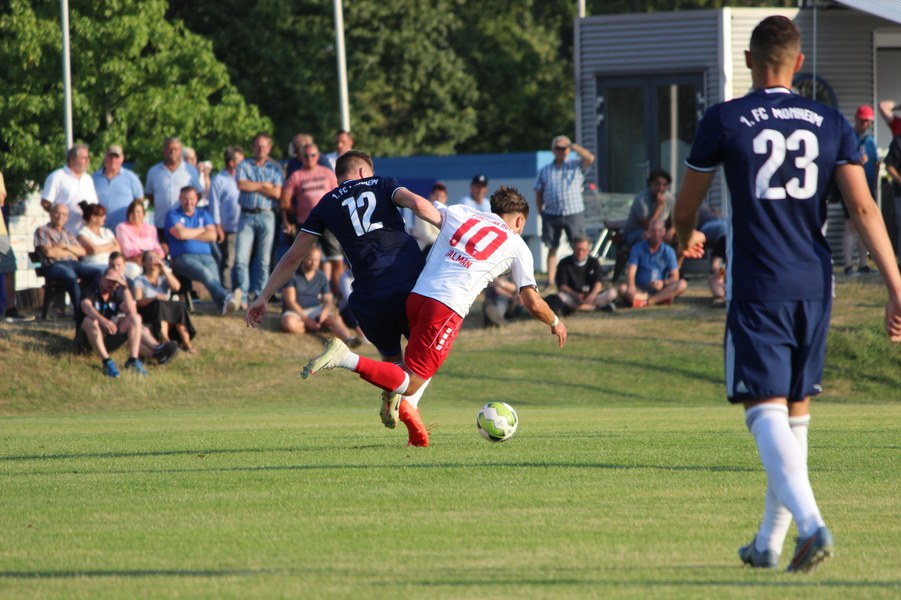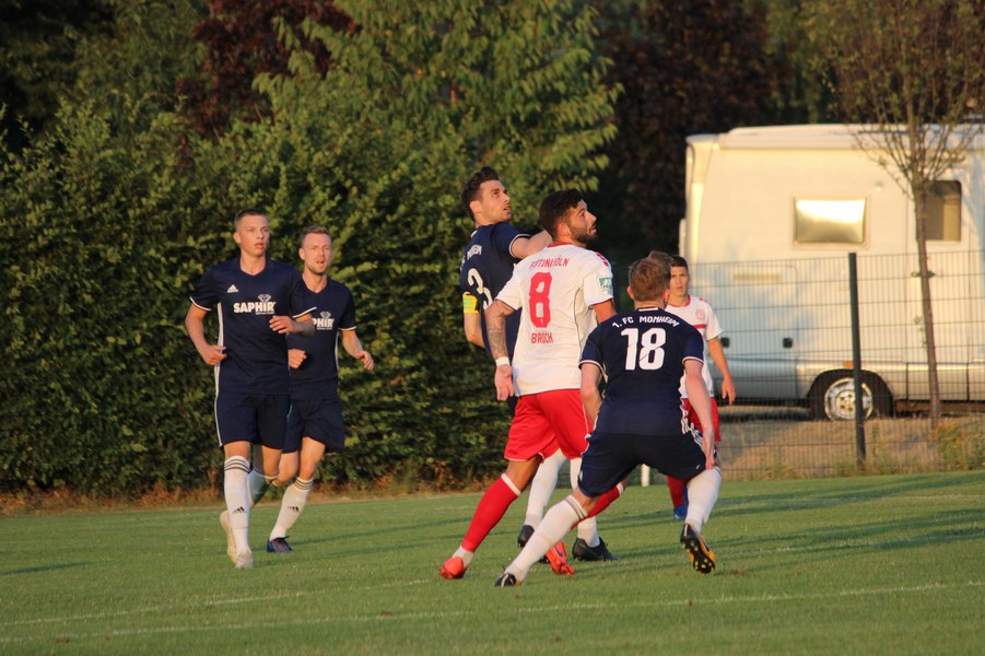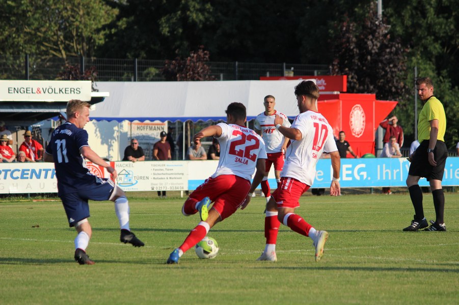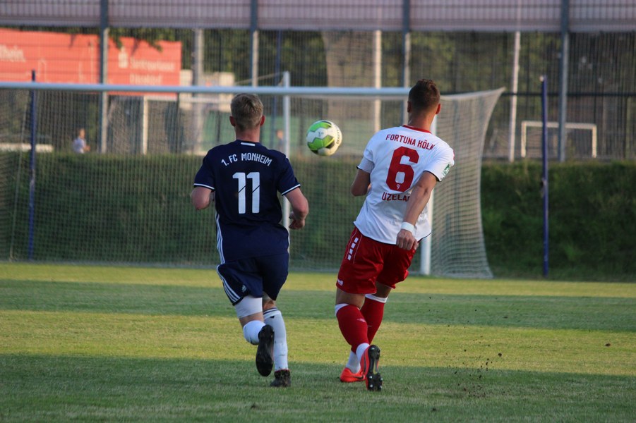 Mit den FC Monheim hatte die Fortuna im nunmehr dritten Testspiel der laufenden Woche einen Oberligisten vor der Brust. Zu Beginn der Partie fehlte jedoch die in den vergangenen Testspielen gezeigte Frische in Kopf und Fuß. Immer wieder schlichen sich kleine Unsauberkeiten in das Spiel der Fortuna ein. Dennoch suchten die Spieler immer wieder den Weg nach vorne und belohnten sich schließlich mit der Führung. Nach einer verunglückten Abwehraktion des Monheimer Torwarts brachte Blendi Idrizi den Ball auf Firat Tuncer, der ins leere Tor köpfte (38.). Auch Monheim kratzte an einem Treffer. Fortuna hatte jedoch Glück, dass der Ball von der Latte des eigenen Gehäuses kurz vor der Linie aufkam. So nahmen die Südstädter die Führung mit in die Pause.