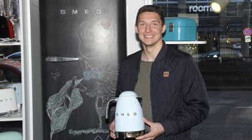 MP: Ich bin ein solider Mann und kann das nötigste machen, angefangen bei einem Nudelgericht. Den Großteil übernimmt aber glücklicherweise meine Frau, sonst wäre ich ein Hungerhaken. Die Kühlschränke von Smeg hier ähneln meinem. Ich mag diesen Retrostyle sehr. Die Küchengeräte hier sind ja der Wahnsinn.