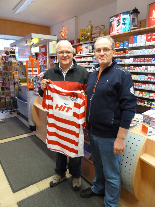 Für Wolfgang Meirich war es so ein wenig ein vorgezogenes Weihnachtsgeschenk, als Manfred Kluth ihm seinen Gewinn überreichte. Der Fortuna-Fan war einer der Kunden der Fortuna-Vorverkaufsstelle "Lotto Kluth", der in der Hinrunde eine der neuen Minidauerkarten (fünf Ticket für den Preis von vier) gekauft hatte. Unter diesen war ein Original-Trikot der Fortuna verlost worden und löste jetzt die ersten Weihnachtsgefühle aus. Auch in der Rückrunde ist dieses neue Ticketangebot ausschließlich bei den beiden Vorverkaufs­stellen der Fortuna Lotto Kluth (Höninger Weg 184, Köln-Zollstock) und Lotto Burckardt (Höninger Weg/ Ecke Gottesweg, Köln-Zollstock erhältlich.