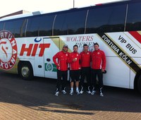 Jonas Sela, Kevin Kruth, Dirk Caspers und Steffen Moritz haben es sich trotz der frühmorgendlichen Abfahrt nach Kaiserslautern nicht nehmen lassen, ein Foto vor dem "neuen" Mannschaftsbus der Fortuna zu machen. Dank des Hauptsponsors HIT und natürlich der Kölner Busreisefirma Wolters wurde die Sommerpause genutzt, um dem Mannschaftsbus der Fortuna ein eigenes Gesicht zu geben. Damit ist die Fortuna nun auf allen Auswärtsfahrten nun schon von...