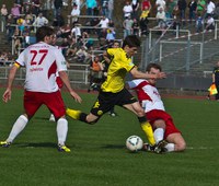 (Mittelfeldspieler Maurice Kühn stoppt diesen Konterversuch von Admir Terzic mit letzter Mühe, Foto: Gert König) Die Fortuna hat das Auswärtsspiel bei Borussia Dortmund II deutlich mit 1:4 (0:1) verloren. Der Fortuna, die wieder mit Maurice Kühn antrat, boten sich nicht nur in der ersten Spielhälfte einige hochkarätige Einschussmöglichkeiten, die aber leider ungenutzt blieben. Besser machte es der BvB, der mit der ersten Gelegenheit in Führung...