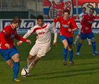 (Hamdi Dahmani hatte eine der größten Torchancen des Spiels, sein Kopfball in der zweiten Spielhälfte strich jedoch knapp über die Querlatte, Foto: Gert König)