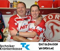 Die beiden Kölner Kundenberater Dirk Domgörgen und Rene Wegmann sind nicht nur Fans der Fortuna, sondern auch bei jedem Heimspiel vor Ort. Gerne informieren Sie Euch über die vielen Vorteile eines Wechsels zur TK.