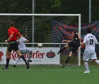 (Steffen Moritz erzielt im Nachschuss das 2:0 gegen Mittelrheinligist VfL Alfter, Foto: Gert König)
