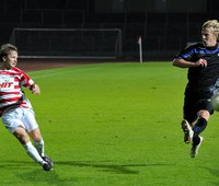 (Tibor Heber flankt hier aus vollem Lauf - der Duisburger Abwehrspieler kann nur zuschauen, Foto: Gert König)