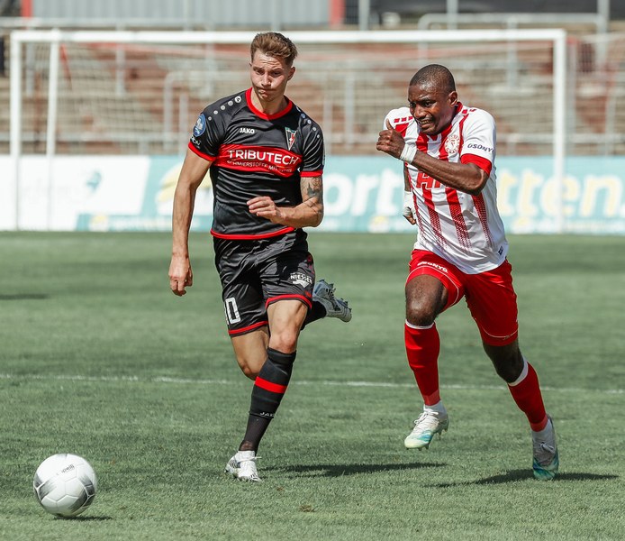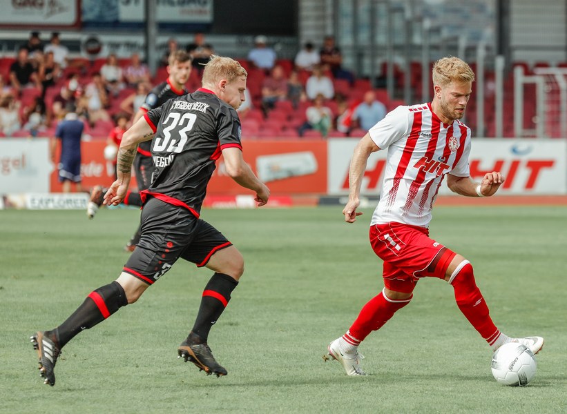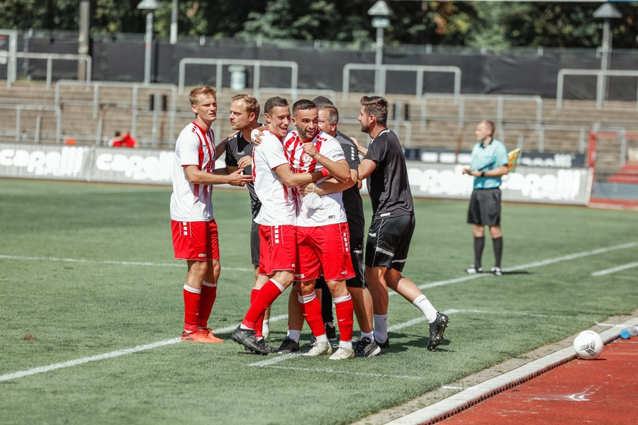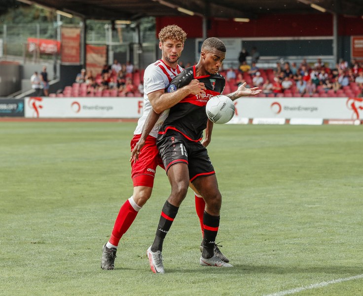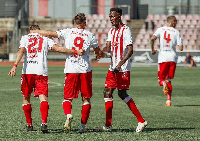 Im ersten Spiel der neuen Regionalliga Saison war der FC Wegberg-Beeck bei strahlendem Sonnenschein zu Gast im Südstadion. In der Anfangsphase schenkten sich beide Mannschaften nichts und führten intensive Zweikämpfe. Zunächst fand das Spielgeschehen überwiegend im Mittelfeld statt, dabei überließ der FC Wegberg-Beeck meist der Fortuna den Ball und lauerte auf Konter. Die erste gute Chance der Partie gehörte dann aber den Wegbergern. Poggenberg foulte einen Spieler der Gäste am Rande des Strafraums. Den fälligen Freistoß brachte Jeff-Denis Fehr in den Strafraum, wo einer seiner Teamkollegen zum Kopfball kam, aber Fortuna Schlussmann André Weis parrierte. Im Gegenzug spielte die Fortuna schnell nach vorne und holte in der 15. Spielminute die erste Ecke heraus. Die Ecke kam von der rechten Seite in den Strafraum, wo Kapitän Jannik Löhden zwar an den Ball kam, diesen aber nicht kontrollieren konnte. Ubabuike holte sich anschließend den Ball und drückte ihn zur 1:0 Führung (16. Minute) über die Linie. Danach machte die Fortuna schnell weiter und bemühte sich sofort zu erhöhen. Nur zwei Minuten später kam Rumpf nach einer Ecke von Najar zum Kopfball, der Ball flog allerdings knapp über die Latte. In der 26. Spielminute gab es dann die nächste große Chance auf 2:0 zu erhöhen: Imbongo schickt Ubabuike links auf die Reise, der legte quer auf Marquet, doch dessen Gegenspieler passte auf und konnte zur nächsten Ecke für Fortuna klären. Diese resultierte in einer weiteren Ecke, welche von Najar hereingebracht wurde und keinen Abnehmer fand. Fortuna war in der restlichen ersten Halbzeit klar überlegen, doch ein weiterer Treffer wollte nicht gelingen.