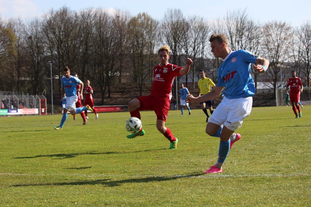 Die Fortuna begann das Halbfinale im Bitburger-Pokal sehr konzentriert und aufmerksam. Von Beginn an übernahmen die Kölner die Spielkontrolle und zeigten sich speziell im Gegenpressing wachsam. So wurden Gegenstöße der Hennef bereits im Keim erstickt. Folglich verbuchte die Koschinat-Elf die erste nennenswerte Möglichkeit, als sich eine Bogenlampe von Bender gefährlich auf das Hennefer Tor senkte (9.). Kurz darauf blieben Fink, Biada und Schröder nach einer Ecke mit ihren Schüssen an einem Abwehrbein hängen (11.). Hennef melde sich mi einem Kopfball nach einem seitlichen Freistoß erstmals offensiv an (13.). Es entwickelte sich früh ein Geduldsspiel für den Drittligisten. Hennef überließ der Fortuna den Ball und versammelte sich um den eigenen Strafraum. Die Kölner taten sich schwer, Lücken zu finden und bekamen zu wenig Tempo in ihr Spiel. Erst nach einem satten Distanzschuss von Souza musste Hennefs Schlussmann Monjeamb erstmals aktiv eingreifen (23.). Hennef stand hinten sicher und wurde mit fortlaufender Spieldauer mutiger. So tauchte Wegner nach einer halben Stunde aussichtsreich im Kölner Strafraum auf (30.). Schließlich ging der Gastgeber etwas überraschend in Front: Nach einer Flanke von rechts ließ Dabers mit einem sehenswerten Seitfallzieher Boss im Tor der Fortuna keine Chance (32.). Die Koschinat-Elf, bei der Glockner für den angeschlagenen Andersen kam, antwortete mit Kopfbällen von Biada und Königs (36./39.). Der Drittligist tat sich gegen einen tiefstehenden Mittelrheinligisten aber weiterhin schwer. Ein Schuss von Bender kurz vor dem Seitenwechsel strahlte schließlich die größte Torgefahr aus (43.).