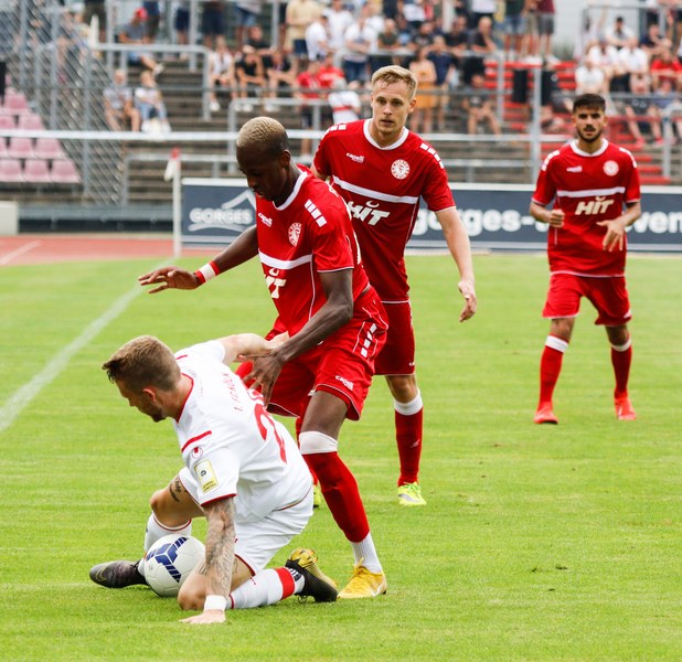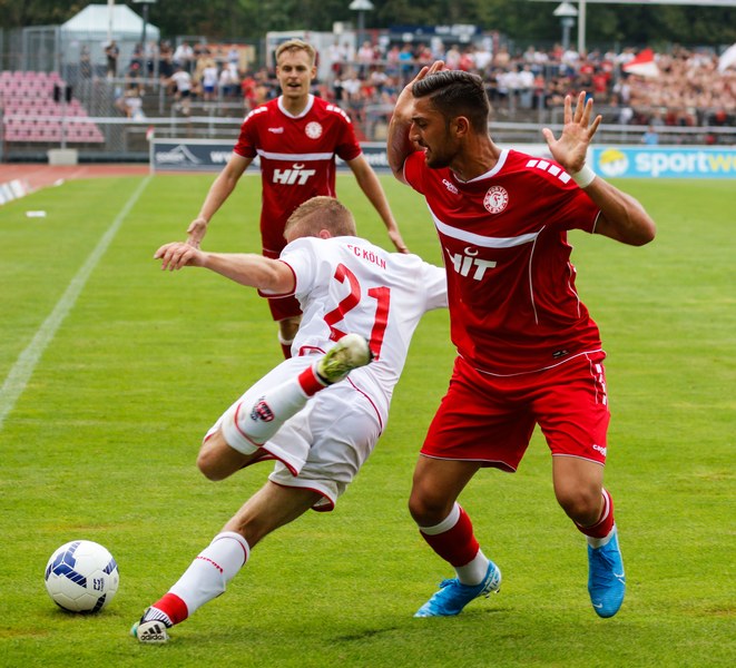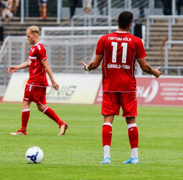Endlich ging es wieder los. Nach etwas mehr als fünf Wochen Vorbereitung stand heute das erste Pflichtspiel für die Fortuna auf dem Programm. Wie bereits in den Testspielen schickte Trainer Thomas Stratos sein Team im 4-2-3-1 auf den Platz. Gleich von Beginn versuchte die Fortuna, ihr Spiel aufzuziehen und den Gegner laufen zu lassen. Die erste Annäherung gelang nach sechs gespielten Minuten. Alem Koljic brachte den Ball von der linken Seite. Bevor er mit seiner Flanke Roman Prokoph finden konnte, wurde der Ball zur Ecke gelenkt. Der FC brauchte einige Minuten, kam dann aber besser ins Spiel uns sicherte sich mehr Spielanteile als noch zu Beginn der Partie. Ein Missverständnis zwischen der Abwehr und Torwart Rauhut brachte den FC erstmals gefährlich in Tornähe – Dennis Brock klärte jedoch zur Ecke (14.). Den nächsten Fortuna-Anlauf startete Franko Uzelac. Der Kapitän suchte mit seiner Flanke Roman Prokoph. Der Ball war aber etwas zu lang und landete in den Armen von FC-Keeper Scott (26.). Auf der anderen Seite prüfte Justin Petermann das ganze Können von Kevin Rauhut, der den Ball zur Ecke abwehren konnte (34.) und damit, genau wie Brady Scott, seinen Kasten bis zum Halbzeitpfiff sauber hielt.