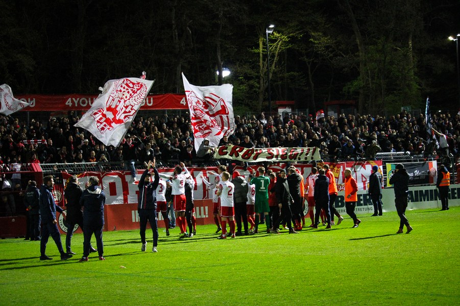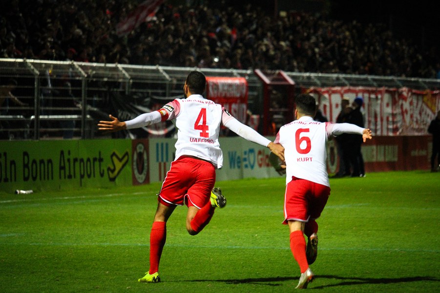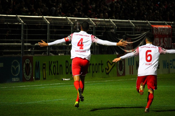 In der Nachspielzeit fiel dann aber doch die Entscheidung zu Gunsten der Fortuna: Nach Ecke von Michael Eberwein bekam Boné Uaferro den Ball auf den rechten Schlappen und verwandelte in bester Torjägermanier unhaltbar zum 3:2 für Fortuna Köln (90 + 3).