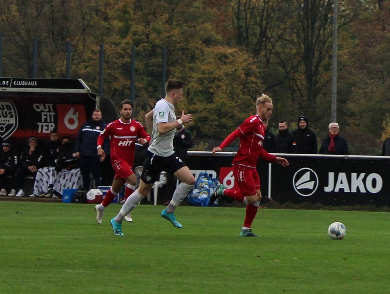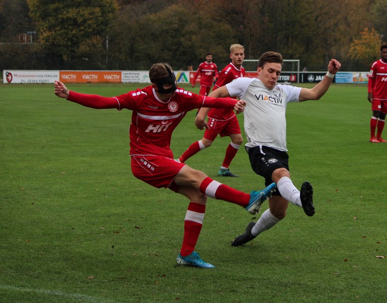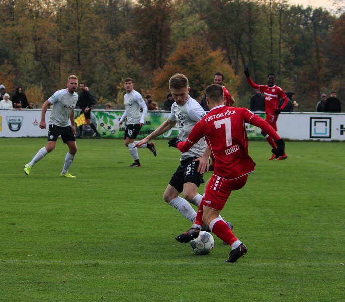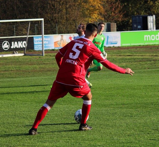 Gegen Haltern war die Geduld der Fortuna gefragt. Haltern ließ Fortuna kommen und lauerte auf die Umschaltmomente. Die Südstädter versuchten es meist über die aktive rechte Seite. Nico Ochojski suchte mit seinen Flanken die Mitspieler, fand jedoch meisten Haltern-Keeper Rafael Hester (8./11.). So sorgte ein Freistoß für das erste große Raunen in der Stausee-Kampfbahn. Franko Uzelac trat zum Freistoß an und zog ihn in gewohnter Manier direkt auf das Tor. Nur Zentimeter setzte er zu hoch an und jagte den Ball über die Latte (16.). Haltern kam ein bisschen besser in das Spiel und tauchte erstmals gefährlich vor dem Tor von Rauhut auf. Arda Nebi rückte über die rechte Seite vor und setzte zum Schluss an. Dieser prallte von Uzelacs rücken erneut vor die Füße von Nebi, der den zweiten Versuch nur knapp über die Latte setzte (22.). Fortuna blieb geduldig und nutzte den nächsten Freistoß für die Führung. Jannes Hoffmann zog den Ball direkt auf das Tor. Hester streckte sich und klärte den Ball kurz vor der Latte – allerdings vor die Füße von Uzelac, der den Ball über die Linie drückte (31.). Nur drei Minuten später tauchte Prokoph vor dem Kasten von Haltern auf, legte den Ball im Fallen allerdings daneben. Kurz vor dem Pausenpfiff hieß es dann noch einmal durchatmen für Fortuna. Haltern zimmerte den Ball an die Latte. Von dort aus landete das Spielgerät vor der Linie und die Südstädter beförderten den Ball aus der Gefahrenzone (45.). Es war die letzte Aktion vor dem Pausenpfiff.