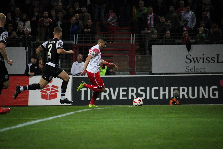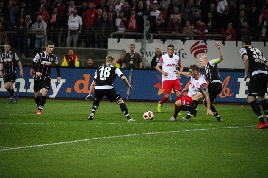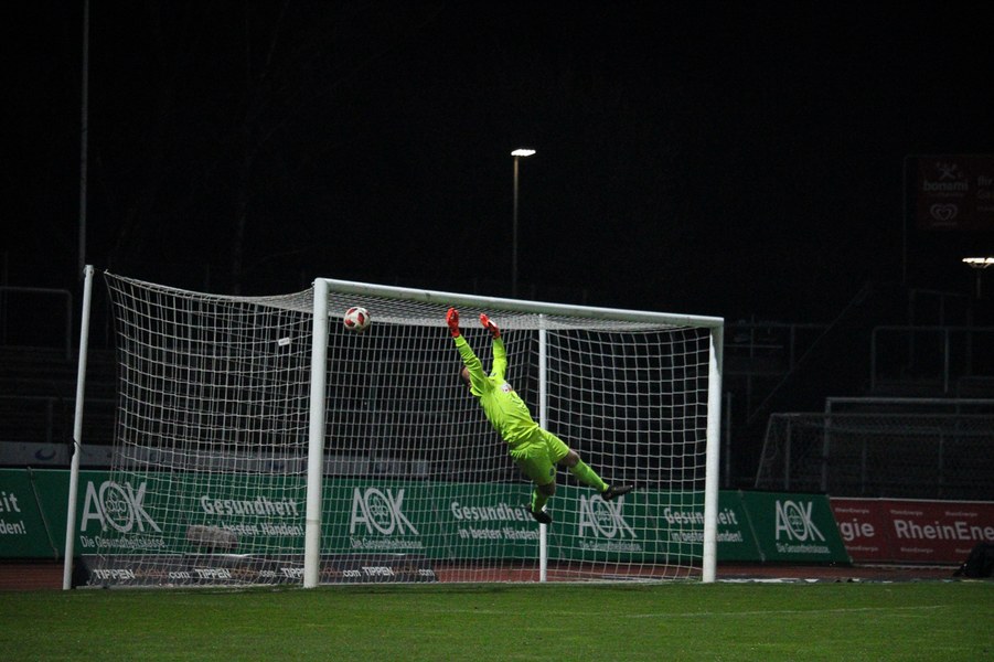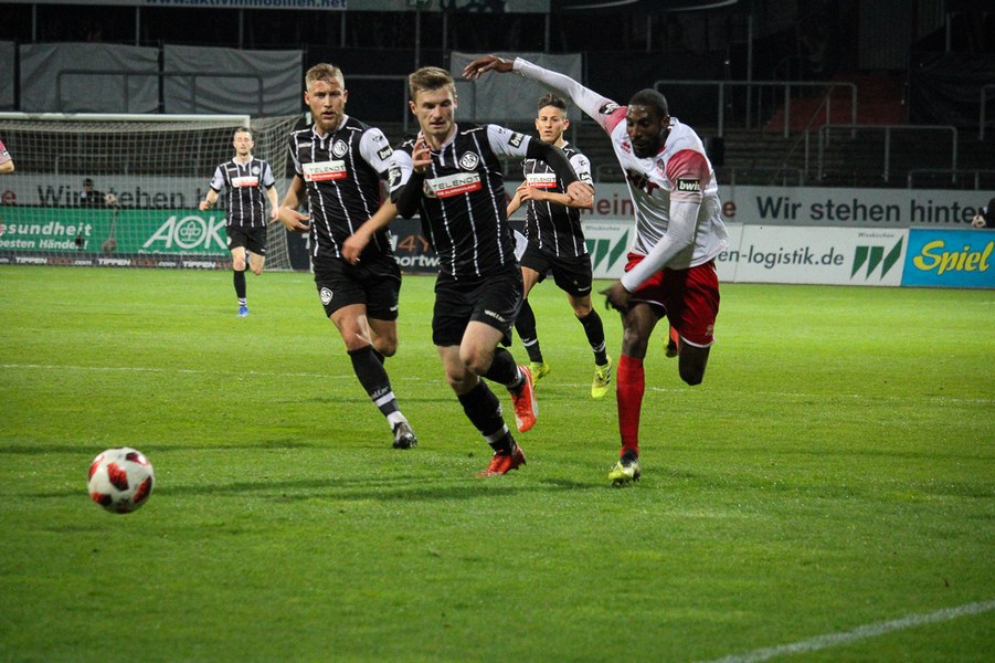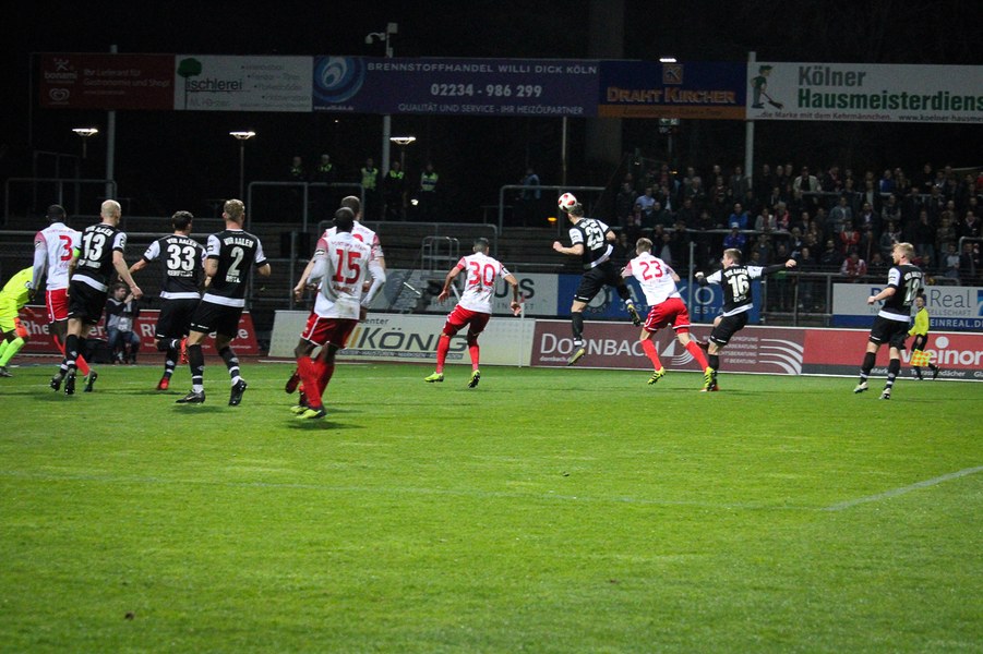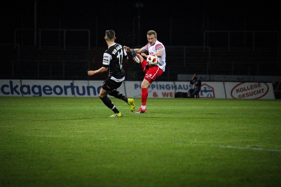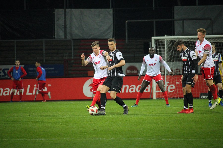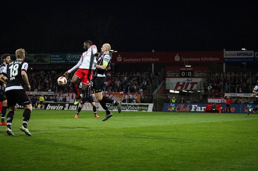 Die Bedeutung des Spiels war den Aktionen von der ersten Minute an anzumerken. Beide Teams agierten erst einmal sehr kontrolliert. Damit waren klare Möglichkeiten am Anfang Mangelware. Nach zehn Minuten sicherte sich Fortuna Köln mehr Spielanteile. Doch nach Foul von Robin Scheu bekam Aalen in der 19. Minute eine gute Freistoßchance. Nikolai Rehnen parierte den Linksschuss von Nicolas Sessa aus 28 Metern mit beiden Händen. Fünf Minuten später war es Stephan Andrist, der aus aussichtsreicher Position am Kölner Keeper scheiterte. Auch in der 30. Minute bewahrte Rehnen die Fortuna vor einem Rückstand. Ein Kopfball von Andrist nur 60 Sekunden später ging zum Glück der Südstädter ebenfalls knapp am Tor vorbei. Ein Schuss von Antonios Papadopoulos aus 16 Metern landete ebenso über dem Tor (36.).