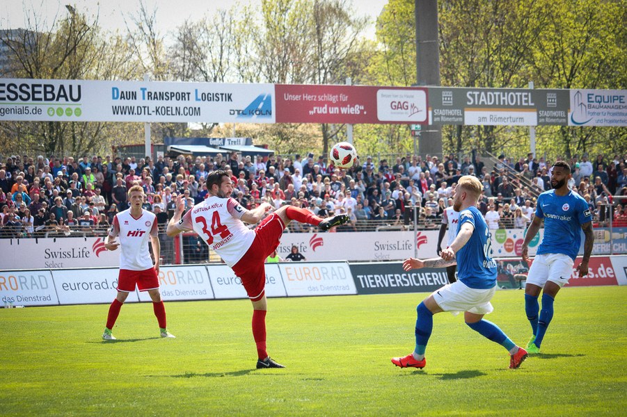 In der Folge versuchte Fortuna Köln, im Spiel mehr Akzente zu setzen. Doch gefährlicher war erst einmal Rostock, beispielweise durch eine Chance von Lukas Scherff (23.). Nach einem Fehler von Hansa-Torhüter Ioannis Gelios kam Robin Scheu in der 35. Minute plötzlich an der Strafraumkante ans Leder. Er setzte den Ball allerdings überhastet am Tor vorbei. Danach passierte nicht mehr viel und es ging mit der Kölner Führung in die Pause.