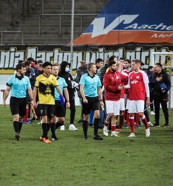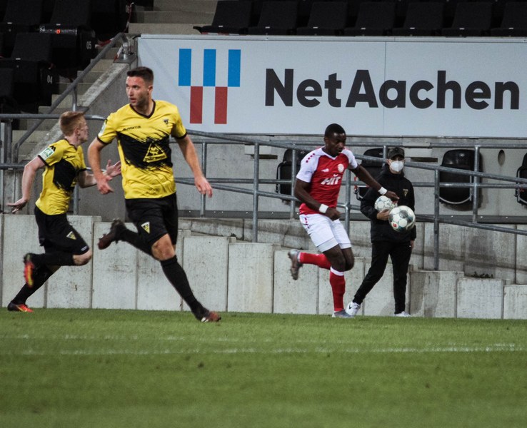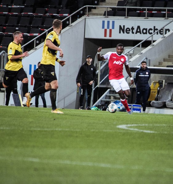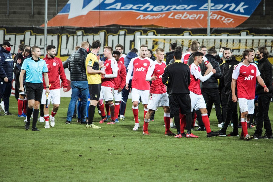 Zur zweiten Halbzeit brachte Trainer Ende Francis Ubabuike für Hamza Salman. Der frische Mann wurde gleich einmal von Timo Hölscher auf die Reise geschickt und holte mit seiner Flanke von der Grundlinie eine Ecke raus, die jedoch nach dem zweiten Anlauf in den Händen von Mroß landete (47.). Kurz darauf probierte es Mike Owusu aus der Distanz. Wieder war Mroß zur Stelle (47.). Eine Minute später meldete sich auch der Gastgeber zurück. Nach einer Ecke von Batarilo-Cerdic hielt Zahnen den Kopf hin. Das Spielgerät landete aber sicher in den Händen von Rauhut. Auch aus der Distanz verfehlte Zahnen kurz darauf den Kasten. (50.). Lange blieb es ruhig im Tivoli. So lief bereits die 64. Minute, als Galle zum Freistoß von halbrechts vor dem Strafraum ansetzte, in der Mitte aber keinen Abnehmer fand. Die Fortuna nutzte ebenfalls einen ruhenden Ball für die nächste Torannäherung. Nach Ecke von Ubabuike stieg Luca Rumpf am höchsten, konnte den Ball aber nur über den Kasten setzen (67.). Durchatmen hieß es in der 74. Spielminute. Nach einer Hereingabe der Gastgeber rutschte Jannik Löhden in den Ball und klärte knapp über das eigene Gehäuse. Im direkten Gegenzug ging es dann auf das richtige Tor. Hölscher setzte seinen Distanzschuss jedoch ebenfalls über das Tor (74.). Die Schlussviertelstunde läutete Aachen mit einer Doppelchance ein. Erst hielt Rauhut stark bei einem Kopfball der Aachener, dann stocherten Günther-Schmidt den Ball aus der Gefahrenzone, nachdem Aachen den Ball nach Ausrutscher von Poggenberg scharf in den Strafraum spielte (78). In den letzten zehn Minuten warf sich die Fortuna noch einmal in jeden Zweikampf, um die drei Punkte mit nach Köln zu nehmen. Nach drei Minuten Nachspielzeit kam der erlösende Pfiff des Schiedsrichters. So endete eine gute Regionalliga-Partie auf schwierigem Untergrund mit einem Dreier für die Südstädter.