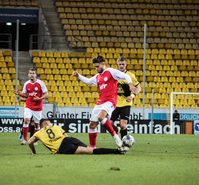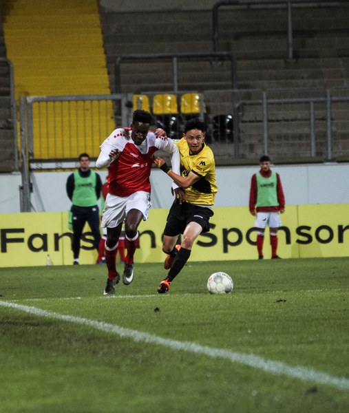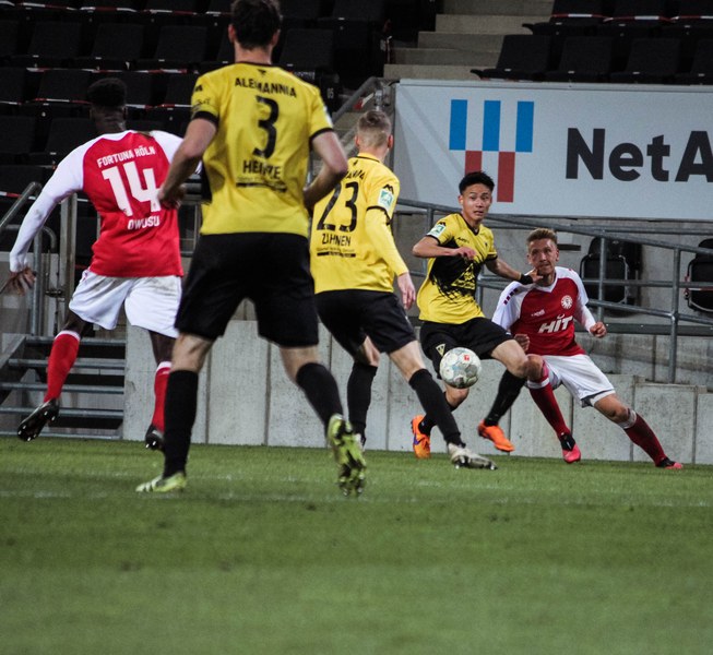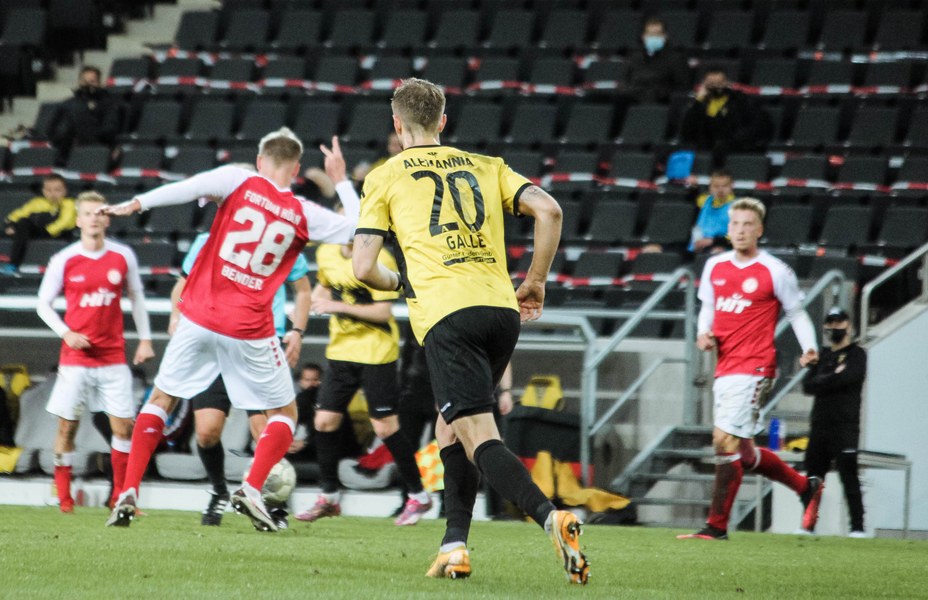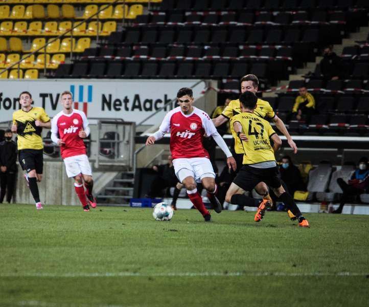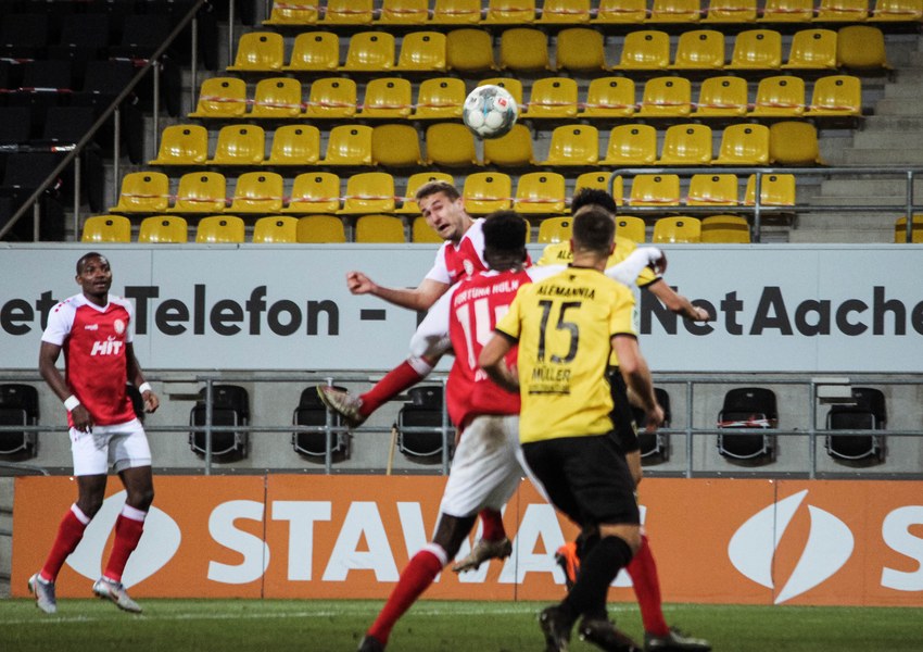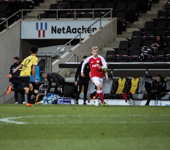Die erste Torannäherung gelang der Alemannia aus Aachen. Luca Rumpf und Timo Hölscher verloren im Spielaufbau den Ball, sodass Batarilo-Cerdic aus der Distanz zum Abschluss kam. Der zentrale Schuss landete jedoch in den Armen von Rauhut (3.). Kurz danach versuchte es Hamdi Dahmani ebenfalls aus der Distanz. Rauhut tauchte schnell ab und hatte auch diesen Ball sicher (5.). Auch gegen Bösing und Zahnen, die es aus der Distanz probierten, hielt Fortunas Nummer 1 den Kasten sauber (11./12.). Die Fortuna kam in der Anfangsphase kaum gefährlich vor das Tor der Gastgeber. Allein zwei Ecken hätten für Unruhe vor dem Tor von Mroß sorgen können. Die Hereingaben von Salman flogen jedoch an Freund und Feind vorbei. 20 Minuten waren gespielt, als Julian Günther-Schmidt den Weg Richtung Aachener Tor aufnahm, am Ende mit seiner Hereingabe von der Grundlinie jedoch am Keeper hängen blieb (20.). Auf der anderen Seite probierten es die Aachener über einen ruhenden Ball. Die Hereingabe von Batarilo-Cerdic wurde allerdings von keinem seiner Mitspieler veredelt (21.). Dann wurde es eng vor dem Tor von Aachen. Günther-Schmidt setzte sich gut durch und spielte den Ball raus auf Roman Prokoph. Der Schuss des Stürmers streifte nur knapp am langen Pfosten vorbei. Der Pfiff des Schiedsrichters folgte jedoch schnell, sodass es ohnehin Abseits gewesen wäre (24.). Die Fortuna behielt hinten die Übersicht, blieb aber im Spiel nach vorne noch zu inkonsequent. Dennoch steckte das Team von Alexander Ende nicht auf und ging nach 31 gespielten Minuten in Führung. Günther-Schmidt und Hamza Salman setzten sich stark im Mittelfeld durch und nahmen Poggenberg mit. Der linke Verteidiger bediente mit einer blitzsauberen Flanke in den Strafraum Roman Prokoph, der zur Führung einköpfte. Nach der Führung zeichnete sich das gleiche Bild ab wie zuvor. Die Fortuna konzentrierte sich auf eine strukturierte Abwehrarbeit und nutzte die Umschaltmomente, um Akzente nach vorne zu setzten. So hatten die Südstädter kurz vor der Pause sogar noch die Chance, die Führung auszubauen. Hamza Salman zog seinem Schuss nach feinem Zuspiel am langen Pfosten vorbei (45.).