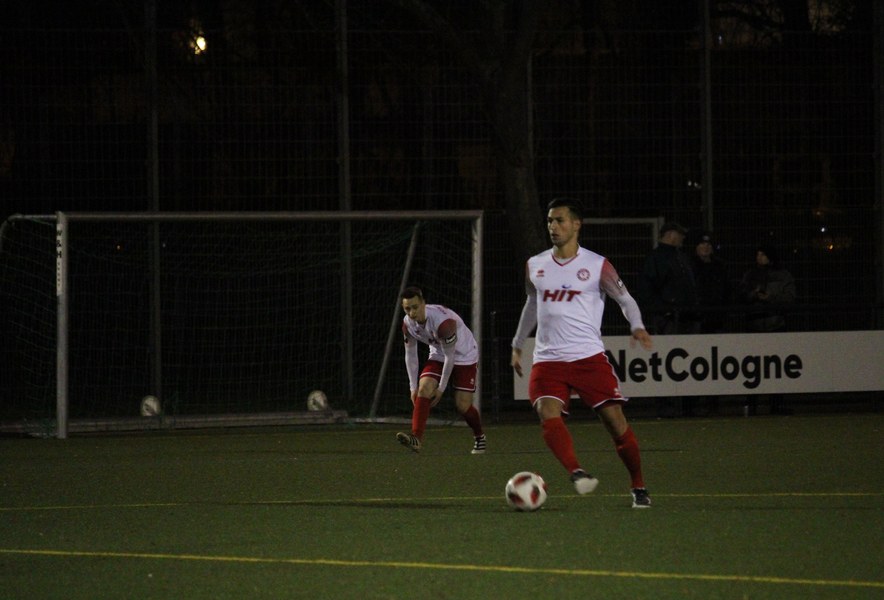 In der 24. Minute gab es den ersten Rückschlag: David Bors traf aus heiterem Himmel per Rechtsschuss ins untere linke Eck der Kölner. Jannik Bruhns, der Nikolai Rehnen an diesem Abend im Tor ersetzte, war chancenlos. Die Gäste agierten danach sicherer und kontrollierten häufig den Ball. Nachdem Vojno Jesic mit einem Rechtsschuss noch an Bruhns scheiterte (34.), machte es Mario Weber nur eine Minute später besser und versenkte den Ball aus fünf Metern Entfernung zum 2:0 für den Bonner SC. In der 42. Minute hatte Daniel-Danso Somuah sogar das 3:0 auf dem Fuß. Aber er scheiterte, frei auf das Tor zulaufend, am Kölner Keeper. Bis zur Halbzeit passierte dann nichts mehr, so ging Bonn mit einem komfortablen Vorsprung in die Pause.