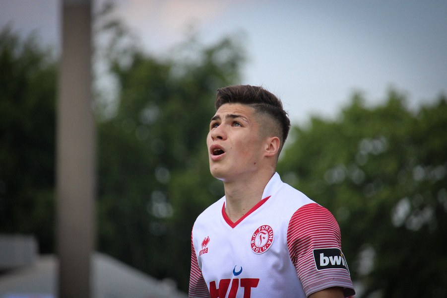 Und schon nach zwei Minuten hatte der Kölner Keeper Schwerstarbeit zu verrichten. Timo Röttger stürmte allein auf sein Tor zu. Doch Kraft parierte den Ball mit einem großartigen Reflex. In der achten Minute folgte ein gefährlicher 18-Meter-Schuss durch Nico Brandenburger. Das zeigte, dass jetzt auch die Gastgeber im Spiel waren – auch wenn die Gäste aus Baden-Württemberg zu Beginn gefährlicher wirkten.