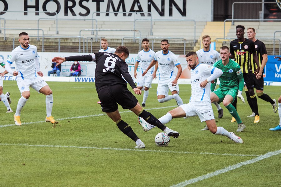 Auch nach der Pause nutzte Lotte die Außenbahn, um den ersten gefährlichen Angriff zu starten. Demaj legte den Ball in die Mitte, aber Ochojski haute den Ball aus der Gefahrenzone (49.). Danach wurde es wieder hektisch auf dem Platz. Nach einem Zweikampf zwischen Löhden und Demaj blieb der Spieler von Lotte nach einem vermeintlichen Tritt liegen. Bajric eilte herbei. Kopf an Kopf mit Löhden ging er plötzlich zu Boden, um eine rote Karte wegen Kopfstoßes zu provozieren. Der Schiedsrichter behielt die Übersicht und gab Löhden gelb (52.). Lotte machte mächtig Druck und jubelte nach einer Ecke erstmals – jedoch nur für kurze Zeit. Der Ball zappelte zwar im Tor, allerdings hob der Linienrichter die Fahne (55.). Vier Minuten später geschah es dann doch. Aus zentraler Position zog Plautz den Ball aus der Distanz auf das Tor. Velichkov machte sich lang, der Ball schlug aber dennoch im Winkel ein (59.). Fortuna stecke nicht auf und erspielte sich in der 64. Minute einen Eckball. Die Hereingabe setzte Julian Günther-Schmidt aber nur auf das Tornetz. Danach wurden die Probleme der Fortuna größer. Oft war im Mittelfeld Schluss und der Ball ging an Lotte verloren. Dann kam es zu einem Kurzeinsatz von Lottes Aydinel. Der Neuzugang setzte Sekunden nach seiner Einwechslung (71.) einen Schuss aus dem Mittelfeld auf das Tornetz und musste nach der Aktion verletzt vom Platz (71.). Fortuna versuchte es in der Schlussphase mit vielen langen Bällen in die Spitze. Erst machte Owusu den Ball fest und Salman setzte seinen Schuss daneben (76.), dann versuchte es Günther-Schmidt als Ableger, aber wieder landet der Salman-Schuss über dem Tor (78.). Dann wurde es bitter für die Fortuna: Nico Ochojski verlor in der eigenen Hälft den Ball und Luca Rumpf musste ran, verursachte bei seiner Abwehraktion jedoch einen Elfmeter. Timo Brauer trat an und jagte den Ball zur Erleichterung aller Fortunen an die Latte (80.). Fortuna roch noch einmal die Chance und beorderte Löhden in die Sturmspitze. Der lange Verteidiger sorgte für Unruhe und versuchte, die langen, hohen Bälle festzumachen. Auf der anderen Seite musste Velichkov in der Nachspielzeit erstmals wirklich eingreifen. Nach seinem parierten Schuss ertönte jedoch ein Pfiff. Abseits. Dann warf die Fortuna nochmal den Motor an und erkämpfte sich fast noch einen Punkt. Nach einem langen Freistoß von Poggenberg in den Strafraum klatschte der Ball an die Latte, ehe Peitzmeier den Nachschuss von Ochojski parierte. Die anschließende Ecke brachte der Fortuna nichts mehr ein. So stand nach einer turbulenten Partie die erste Saisonniederlage der Fortuna.