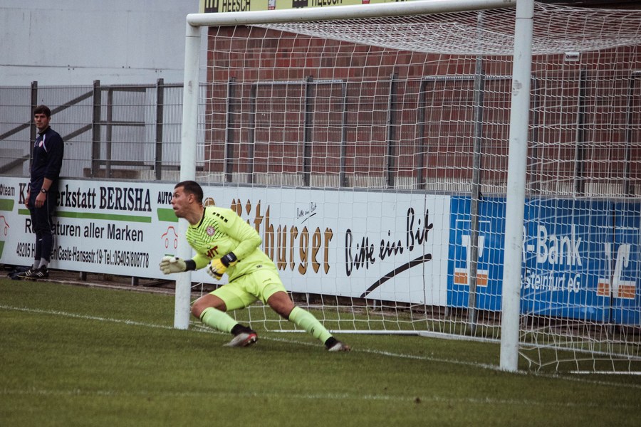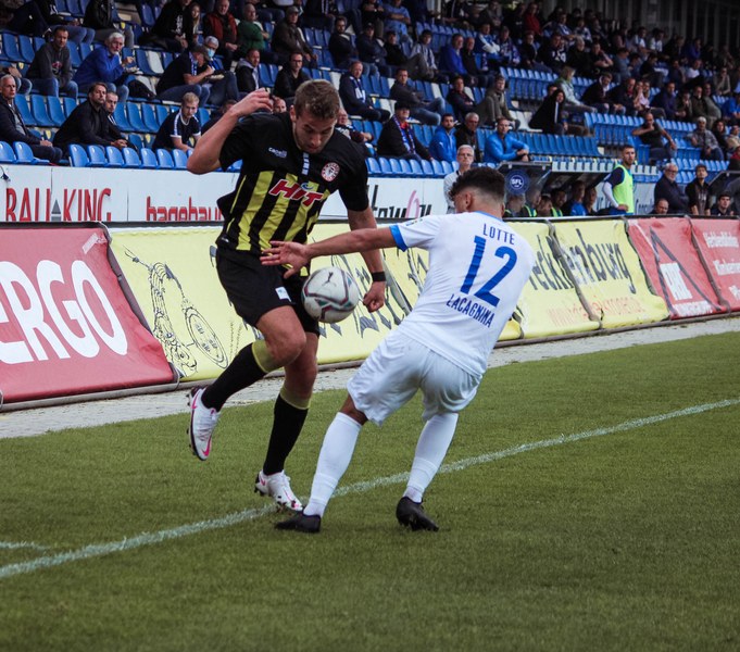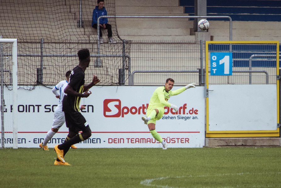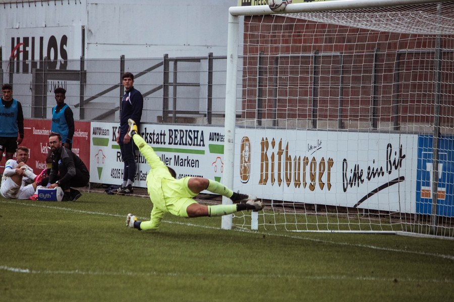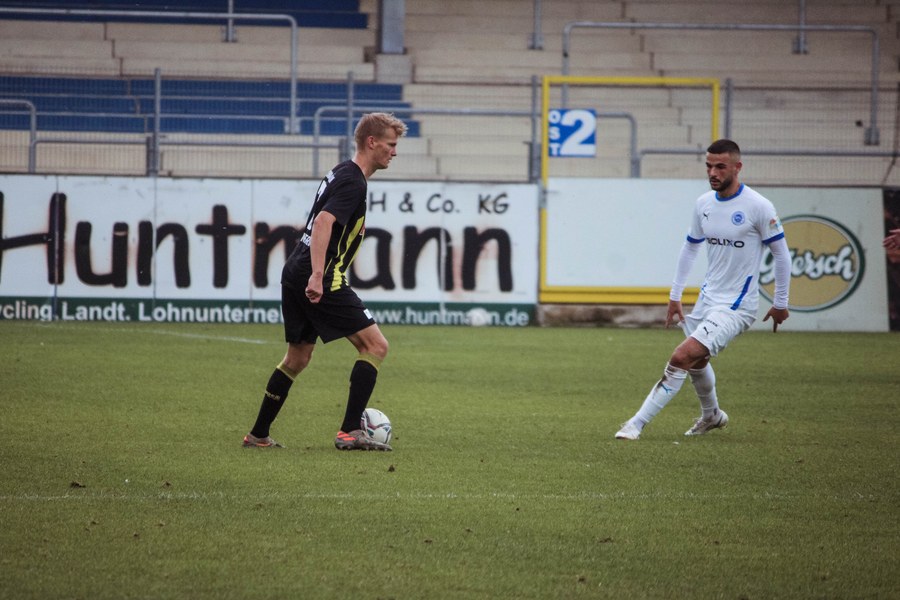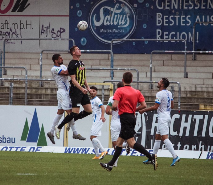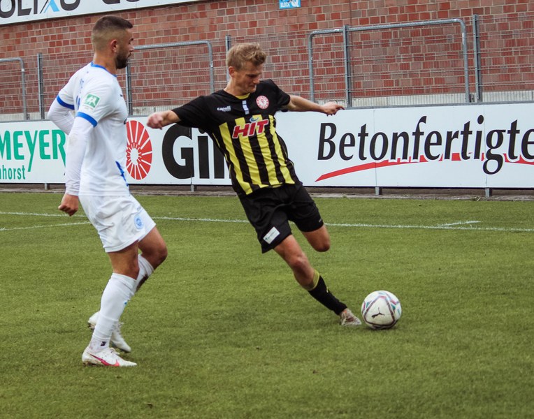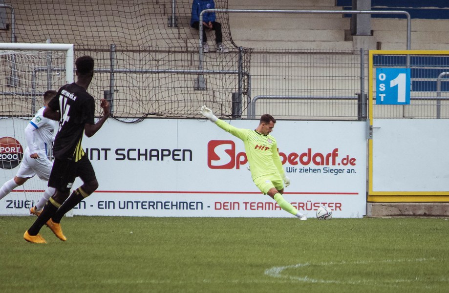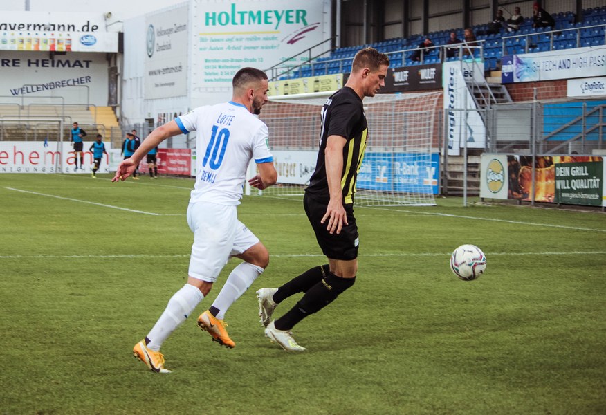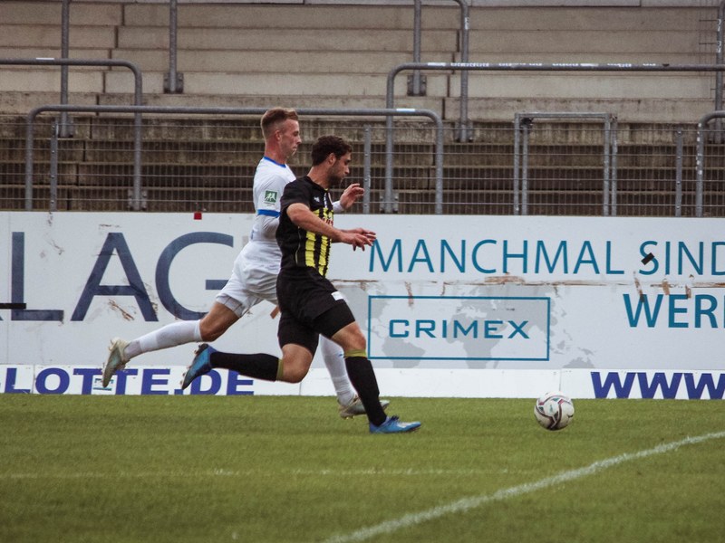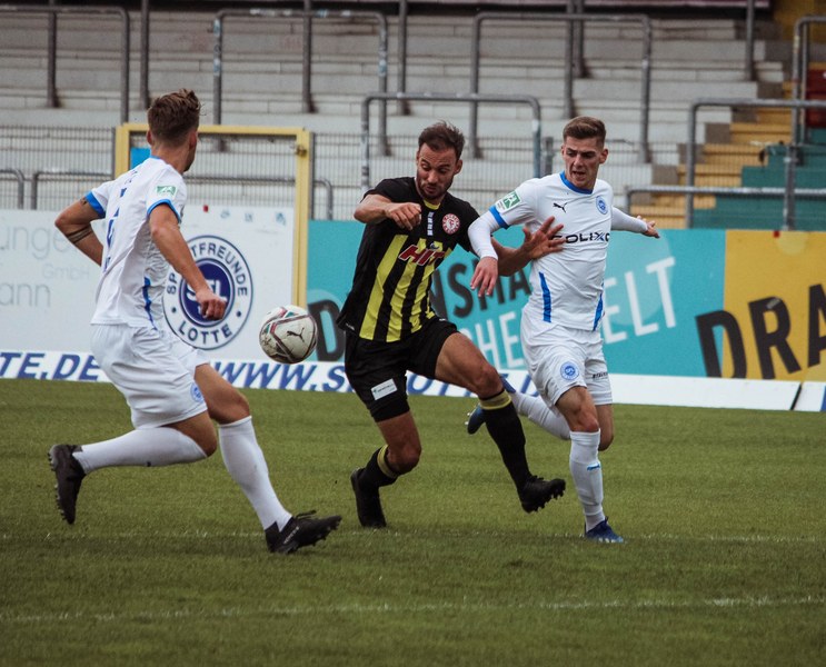 Gleich von Beginn an machte die Fortuna Druck und holte nach einer gespielten Minute die erste Ecke der Partie raus. Die Hereingabe landete auf dem Fuß von Franko Uzelac, der den Ball aber nicht auf das Tor bringen konnte. Drei Minuten später landete der Ball, diesmal durch einen langen Einwurf, erneut bei Uzelac. Erneut versuchte der Kapitän den Ball Richtung Lotter Gehäuse zu bringen, ehe die gesamte Fortuna-Mannschaft „Hand“ schrie. Der Schiedsrichter ließ das Spiel aber weiterlaufen (4.). Die nächste gute Chance der Fortuna ging auf das Konto von Mike Owusu, der setzte jedoch den Ball über das Tor (18.). Dann wurde es hektisch im Stadion am Lotter Kreuz: Die Gastgeber schlugen einen langen Ball. Kevin Rauhut eilte aus seinem Kasten, kam aber etwas zu spät und erwischte seinen Gegenspieler kurz vor dem Seitenaus. Der Schiedsrichter pfiff und zog die glatt rote Karte. Nachdem auch Prokoph für Ersatzkeeper Velichkov das Feld verlassen hatte, ging es für die Fortuna mit zehn Mann weiter. Kurz danach wurde es direkt brenzlich vor dem Tor des neuen Mannes. Ein Freistoß von der Strafraumkante landete erst in der Mauer und schließlich im Nachschuss in den Armen von Velichkov (27.). Auf der anderen Seite versuchte Brandenburger einen Doppelpass auf Hölscher durchzustecken. Nach einem Missverständnis trudelte der Ball jedoch Richtung Keeper (29.). Lotte versuchte immer wieder über die Außen Akzente zu setzen und den Ball von der Grundlinie in die Gefahrenzone zurück zu spielen. So auch in der 33 Spielminute, jedoch war Velichkov am ersten Pfosten zur Stelle. Fortuna machte sich oft selbst das Leben schwer und dachte in einigen Momenten zu kompliziert. So ging es ohne Tore in die Pause.
