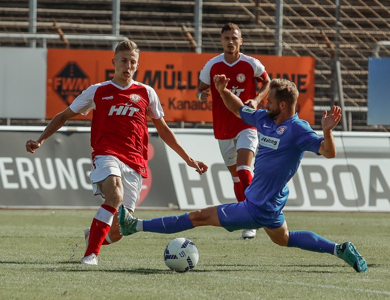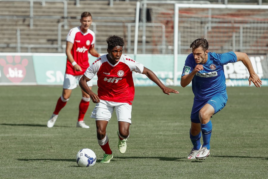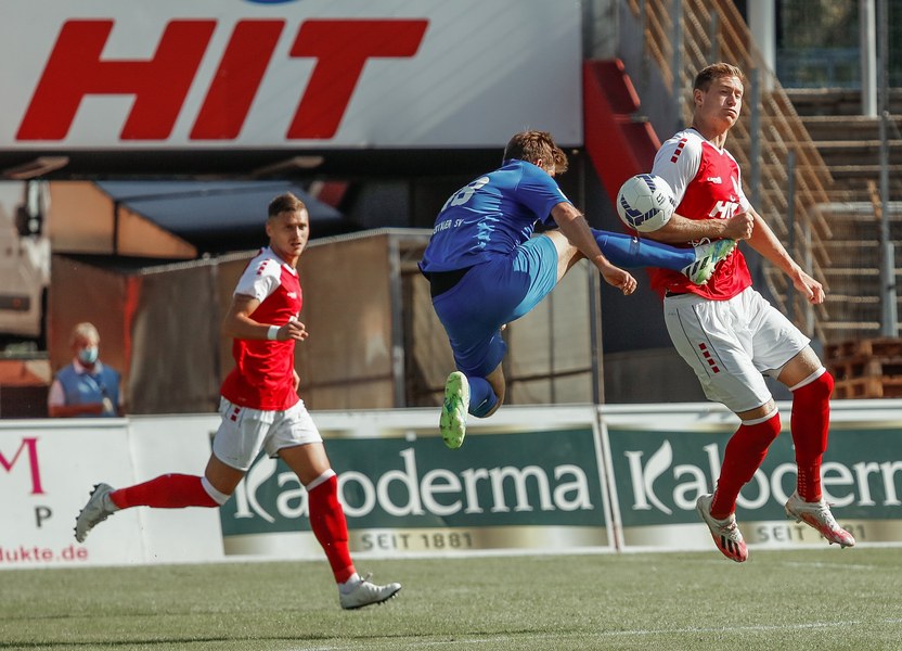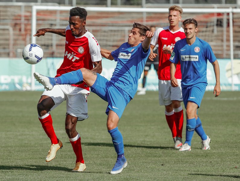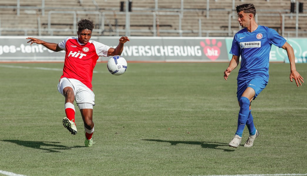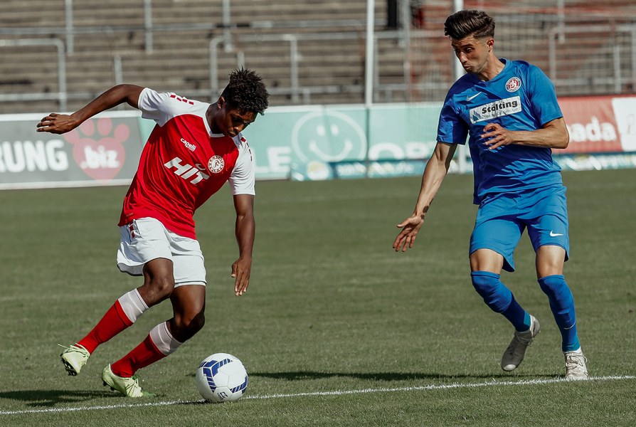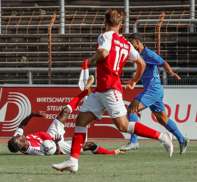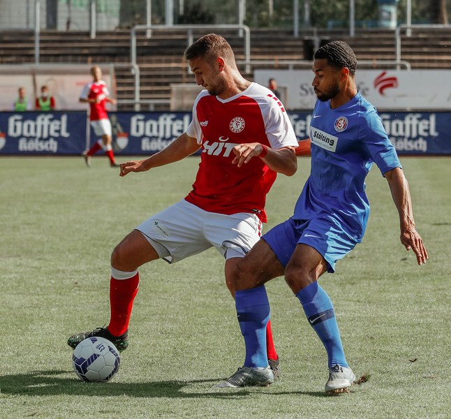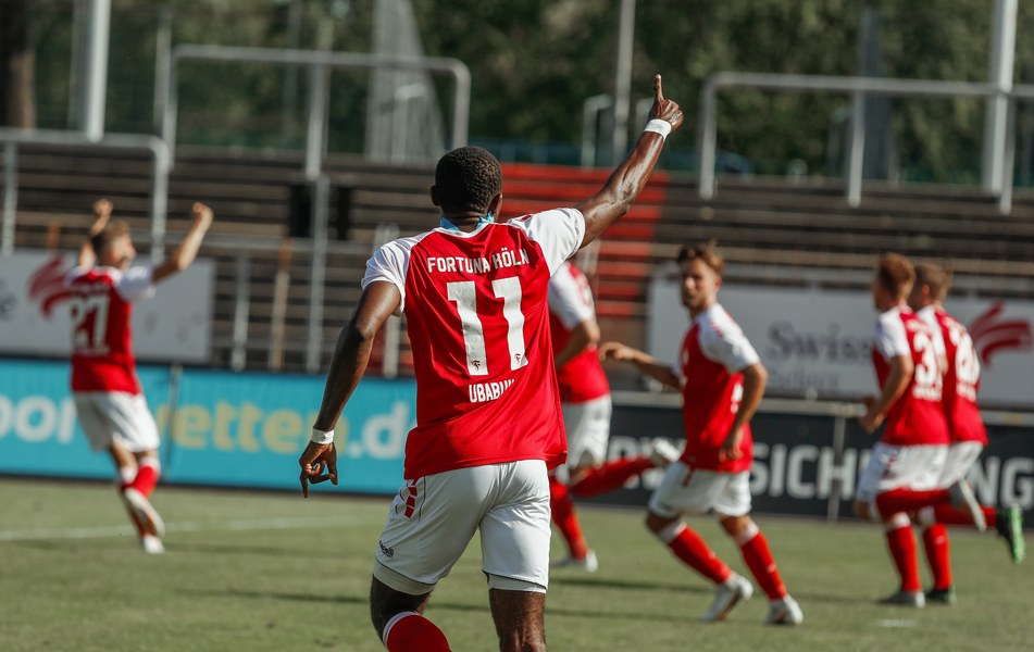 In der zweiten Hälfte war zunächst wieder die Fortuna am Drücker. Erst war es Ubabuike (47.) und kurz darauf Salman (50.), die beide zu spät den Abschluss fanden. In der 52. Minute war es erneut Salman, der mit einem Kopfball im Sechzehner Torwart Lübcke prüfte. Die folgenden Minuten waren von einigen weiteren guten Chancen unserer Fortuna gezeichnet. Owusu und Günther-Schmidt setzen aber den Ball knapp neben und über das Tor. Dann ein Aufschrei im Südstadion. Mike Owusu wurde in der 57. Minute im Strafraum zu Boden geschubst. Der Pfiff des Schiedsrichters blieb nicht lange aus. Franko Uzelac trat zum fälligen Elfmeter an, scheiterte aber am Keeper. Die Fortuna ließ sich von dem Rückschlag aber nicht unterkriegen und erspielte sich weiterhin zahlreiche gute Chancen und belohnte sich schließlich für den Aufwand. In der 69. Minute war es dann Hamza Salman, der von der Strafraumgrenze mit einem sehenswerten Schuss den 2:1 Führungstreffer erzielte. Quasi im Gegenzug egalisiert Beyhan Ametov mit einem weiteren Fernschuss die Führung der Fortuna in der 71. Minute. Fortuna behielt den Sieg jedoch im Blick und baute Druck auf den Gegner auf. Nach einer Flanke von Nadjombe auf Salman, der den Ball auf Ubabuike verlängerte, legte dieser quer auf Owusu der zum 3:2 traf (74.). Dies bedeutete die erneute Führung der Fortuna. In der 75. Minute war es dann soweit: Jan Luca Rumpf gab sein Debüt für die Fortuna und wurde für Francis Ubabuike eingewechselt. Nach 84 Minuten war dann auch für Julian Günther-Schmidt der Arbeitstag zu Ende. Er wurde durch Roman Prokoph ersetzt. Mit viel Einsatz holte der frische Mann auf dem Platz kurz nach seiner Einwechslung eine Ecke raus. Aus dieser resultierte dann der erste Kopfball von Jan-Luca Rumpf , welcher allerdings über dem Tor landete. In der 87. Minute kam dann Batuhan Özden zu einigen Spielminuten, indem er für den Torschützen zum 3:2 Mike Owusu eingewechselt wurde. Kurz darauf ertönte auch der Pfiff des Schiedsrichters. Ein Spiel mit einer turbulenten zweiten Halbzeit ging vorüber und hatte ein gutes Ende für die Jungs aus der Südstadt. Mit nun zwölf Punkten aus vier Spielen bleibt man vorerst weiterhin Tabellenführer.