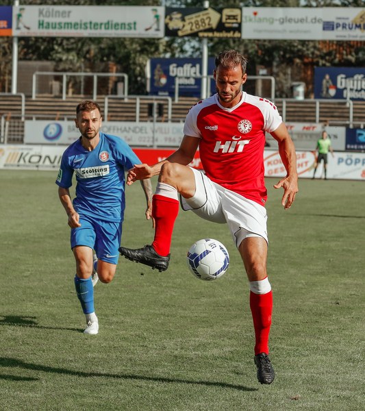 Heute stand das zweite Heimspiel unserer Fortuna an. Zu Gast war der Wuppertaler SV. Das Spiel musste leider kurzfristig und ziemlich unverhofft aufgrund der erhöhten Inzidenzzahl ohne Zuschauer stattfinden. Im Vergleich zur Startaufstellung am vergangenen Mittwoch in Homberg gab es einen Wechsel: Hamza Salman stand für Roman Prokoph auf dem Platz. Das Spiel begann direkt sehr zweikampfbetont, denn beide Mannschaften waren gewillt das Spiel für sich zu entscheiden. In der 10. Minute musste unsere Fortuna einen frühen Rückschlag hinnehmen. Lars Bender musste verletzungsbedingt den Platz verlassen und wurde durch Jean-Marie Nadjombe ersetzt. Der zweite Rückschlag folgte direkt. Nach einer gefährlichen Ecke des Wuppertaler SV, war es Marco Königs der per Kopf vollendete und den WSV mit 1:0 in Führung brachte (12.). Im direkten Gegenzug verpasste Löhden nach einer Ecke nur knapp den Ball (12.). Nach einem Einwurf war es dann erneut Löhden, der den Ball zunächst gut abschirmte und dann gefährlich vor das Tor bringen konnte - auch wenn diesen dann letztlich keiner im Tor unterbringen konnte (14.). Die Fortuna war nun besser im Spiel und setze einige gezielte Angriffe. Nach einem gegnerische Einwurf eroberte Mike Owusu erst den Ball und leitete schließlich einen gefährlichen Doppelangriff ein (18.) Doch sowohl Francis Ubabuike als auch Julian Günther-Schmidt trafen nicht zum Ausgleich. In einem sehr körperlichen Spiel pfeift der Schiedsrichter sehr genau, was zur Folge hat, dass es viele Unterbrechungen gab und der Spielfluss dadurch ein wenig gehindert wurde. In der folgenden Phase kam es dadurch nicht wirklich zu gefährlichen Chancen. In der 29. Minute traf Mike Owusu nach einem gut gespielten Konter nur den gegnerischen Keeper. Kevin Rauhut war es in der 31. Minute, der bärenstark gegen den gegnerischen Gianluca Marzullo parierte. Im Gegenzug konterte die Fortuna durch einen wichtigen Ballgewinn im Mittelfeld von Julian Günther-Schmidt, der auf den im Abseits stehenden Ubabuike durchsteckte (31.). Dieser war mit der Abseitsentscheidung nicht einverstanden und sah im Anschluss die gelbe Karte. Nach einer gefährlichen Ecke von Francis Ubabuike kam Brandenburger fast frei zum Kopfball, doch der Keeper parierte gut (36.). In der 41. Minute prüfte Günther-Schmidt den Keeper Lübcke aus der Distanz, aber die Nummer 1 der Wuppertaler war hellwach. Knapp eine Minute später brachte der eingewechselte Nadjombe den Ball per Flanke vor das Tor, aber auch hier passte der Keeper auf und fingt den Ball ab. Kurz vor der Pause hieß es dann Durchatmen für die Fortuna. Eine von Ubabuikes zahlreichen Ecken wurde in der ersten Minute der Nachspielzeit von Jannik Löhden per Fuß vollendet und führte zum verdienten Ausgleich kurz vor der Halbzeitpause (45+1.).