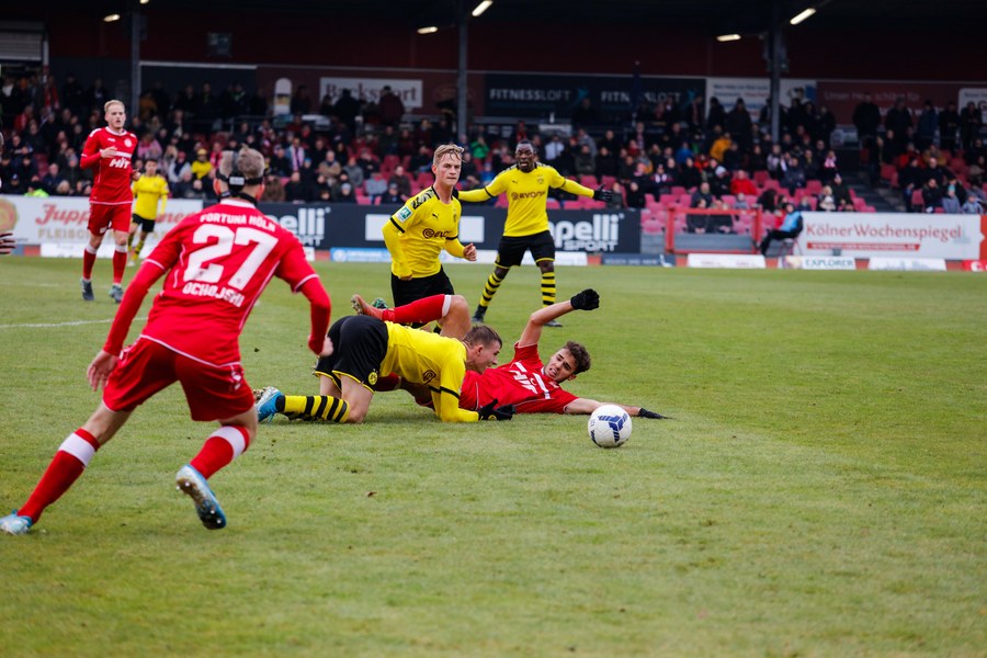 Fortuna Köln traf am heutigen Sonntag auf die U 23 von Borussia Dortmund. Das Spiel war nicht nur das letzte Heimspiel der Hinrunde, sondern auch ein Wiedersehen der Kölner mit Verteidiger Steven Ruprecht, der bis zum vergangenen Sommer das rot-weiße Trikot trug. Im Vergleich zum letzten Spiel gegen TuS Haltern blieb, das Team von Trainer Thomas Stratos unverändert.