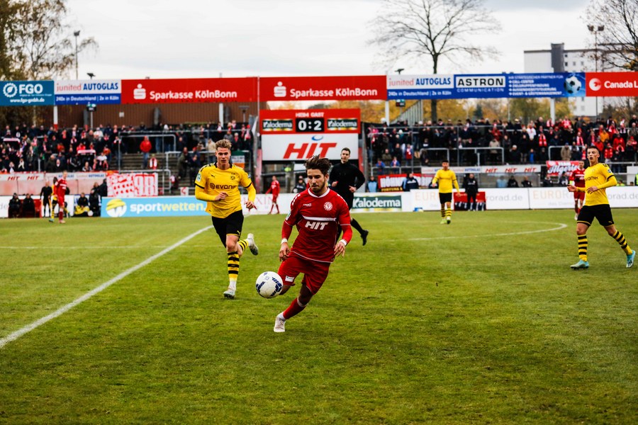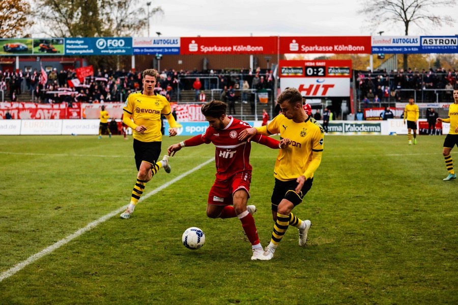 Fortuna Köln hat nach acht Spielen ohne Niederlage drei Punkte an Borussia Dortmund abgeben müssen. Im letzten Heimspiel der Hinrunde unterlagen die Südstädter vor 2.056 Zuschauern 0:2 (0:0). Magnus Kaastrup traf doppelt für die Gäste (65./68.).