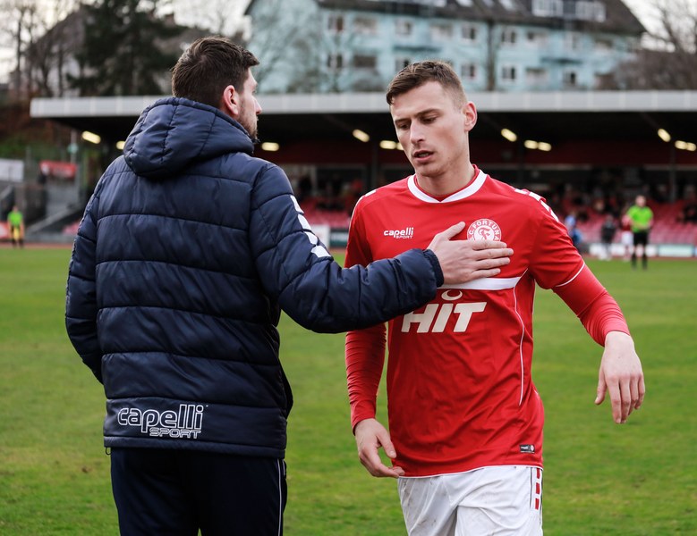Die erste Chance der zweiten Halbzeit hatte Franko Uzelac nach einer Ecke von Nedim Pepic. Sein Kopfball verfehlte das Tor der Knappen aber um einige Meter. Im Gegenzug prüfte der Schalker Sandro Plechaty den toll parierenden Schlussmann Kevin Rauhut aus gut 20 Metern (52.). Fortuna-Trainer Thomas nutzte seine zweite Auswechselmöglichkeit und brachte Hamza Salman für Nico Ochojski in die Partie (55.). Kevin Weidlich übernahm die Position des rechten Verteidigers, Mike Owusu wechselte auf den rechten offensiven Flügel und Hamza Salman gliederte sich dafür in das zentrale offensive Mittelfeld ein. Die Rotation zeigte schnell Wirkung – Mike Owusu fasste sich ein Herz und zog aus über 20 Metern einfach mal ab, sein Schuss traf aber nur den Pfosten (61.). Die Fortuna beherrschte in der zweiten Halbzeit bis dato das Spielgeschehen, alleine das so wichtige Tor wollte nicht gelingen. Auch nach einem Freistoß von Franko Uzelac konnte Kevin Weidlich den Nachschuss nicht auf das Tor der Königsblauen bringen (68.). In der 70 Minute gelang den Gästen nach einer Ecke die 0:1-Führung durch Jan Luca Schuler. Thomas Stratos reagierte sofort und wechselte Kelvin Lunga für den starken Suheyel Najar ein (71.). Doch dann wurde es noch bitterer aus Fortuna-Sicht. Nachdem Franko Uzelac den Schalker Randy Gyamenah im Strafraum foulte, verwandelte der Ex-Fortune Blendi Idrizi den fälligen Strafstoß zum 0:2 für den Schalker Nachwuchs (80.). Zum Ende der Partie nutze Fortuna-Trainer Thomas Stratos seine letzte Auswechselmöglichkeit und wechselte Georgios Touloupis für Franko Uzelac ein. Doch das war die letzte nennenswerte Aktion des Spiels und somit verlor der SC Fortuna Köln gegen die U 23 vom FC Schalke 04 mit 0:2 (0:0).