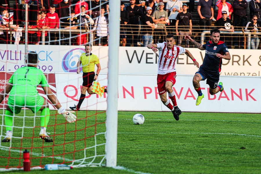 In der zweiten Halbzeit hielt sich das Spiel zunächst weiterhin im Mittelfeld auf, keines der Teams kam zwingend vor das Tor des anderen. In der 54. Minute gelangten die Gäste dann gefährlich vor das Tor der Fortuna, aber mit vereinter Kraft klärten die Südstädter. Danach waren die Gäste besser im Spiel und erspielten einige Chancen. Ab der 60. Spielminute übernahmen die Fortunen wieder die Kontrolle und versuchten das Abwehrbollwerk der Gäste mit schnellem Passspiel zu durchbrechen. Dabei spielten sie teilweise zu hektisch und verloren den Ball wieder, wobei die Ballverluste keine Folgen hatten In den letzten Minuten warf die Fortuna noch mal alles rein und kam einige Male gefährlich vor das Tor von Velichkov, ein Treffer aber, wollte nicht mehr gelingen. So müssen sich die Südstädter, trotz eines ordentlichen Auftritts mit nur einem Punkt zufriedengeben. Ein weiterer Wermutstropfen: mit Batarilo und Brandenburger mussten gleich zwei Spieler angeschlagen ausgewechselt werden.