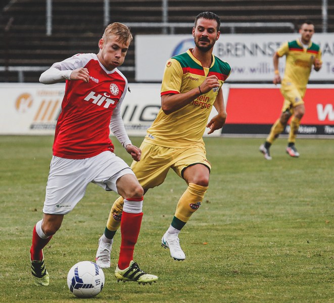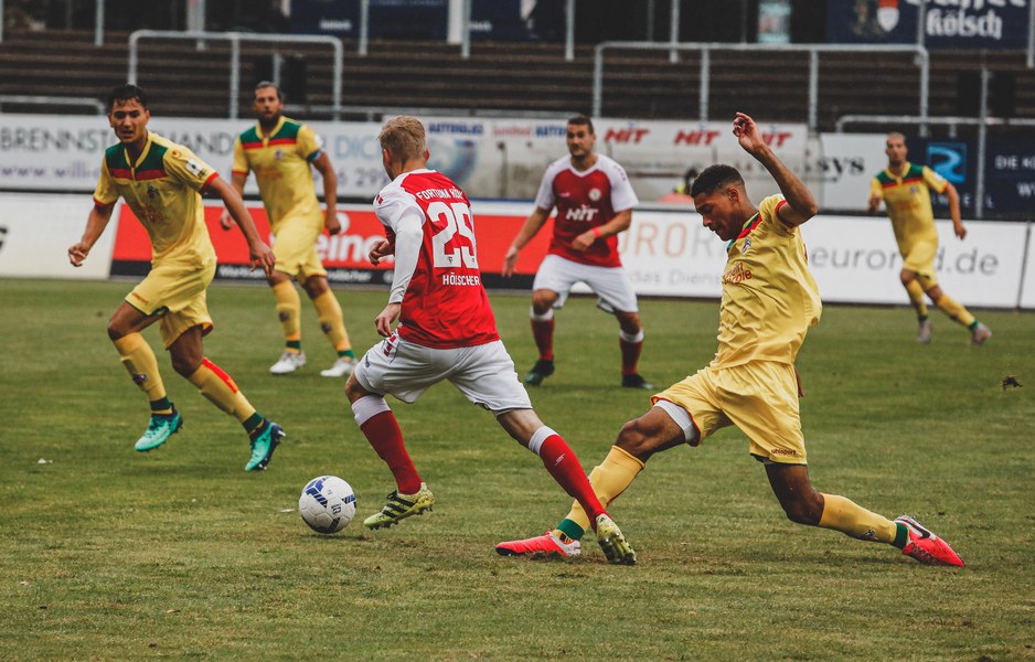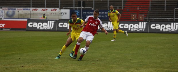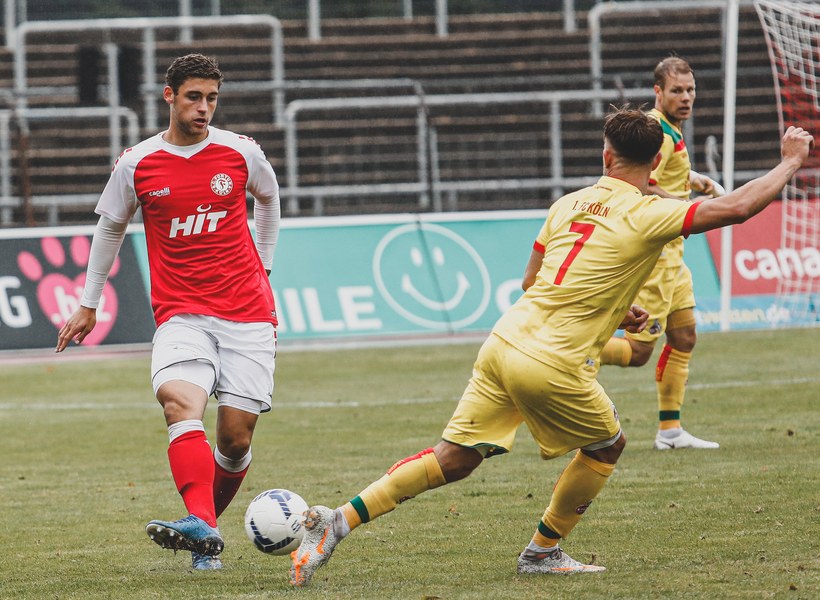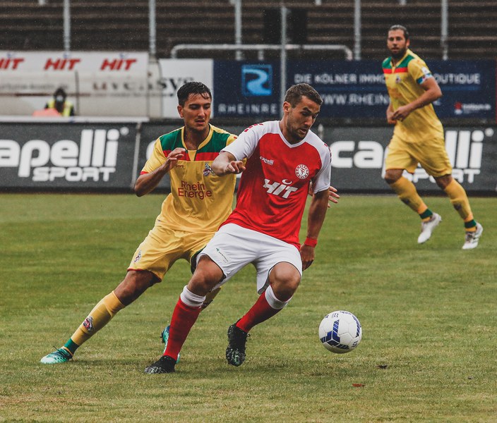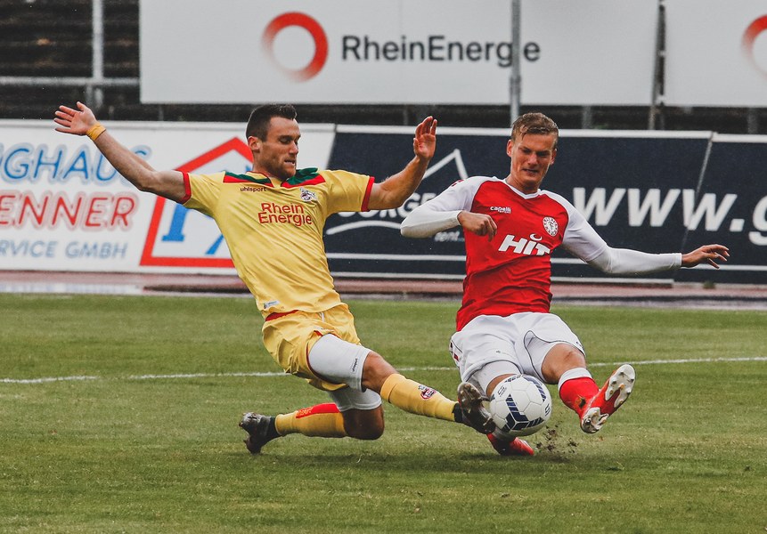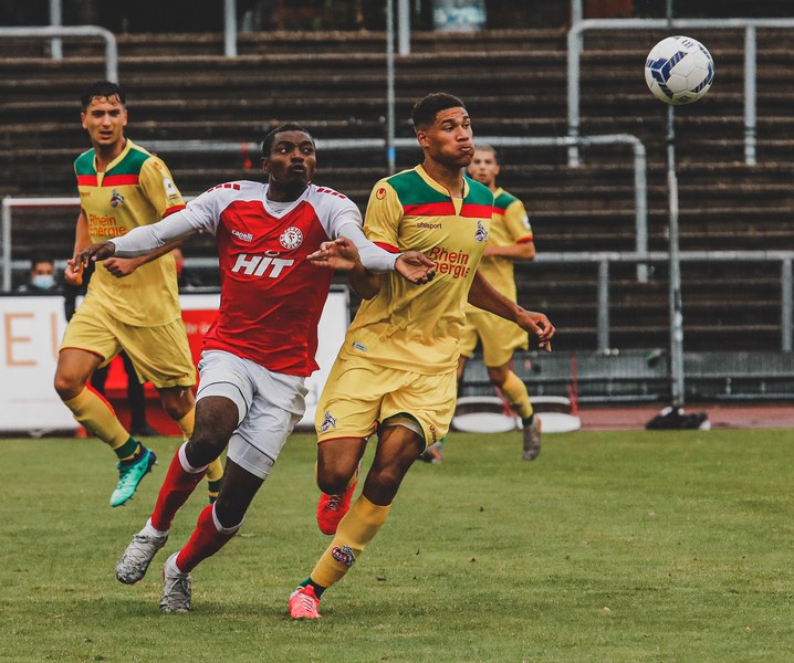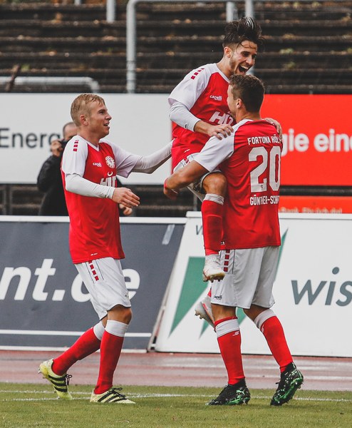 Die zweite Halbzeit startete so, wie die erste endete - nämlich mit Chancen für die Fortuna. Gleich zu Beginn fand Hamza Salman den Abschluss, traf allerdings nur weit über das Tor. In der 47. Minute scheiterte Ubabuike aus kurzer Distanz an Krahl. Quasi im Gegenzug konterte der FC über Christian Clemens, aber der Ball fliegt knapp am Tor vorbei. In der 48. Minute folgte dann eine schöne Kombination über Owusu, Brandenburger, Hölscher, die in Ubabuike seinen Abnehmer fand. Krahl konntrollierte jedoch erneut im Nachfassen den Ball. Owusu drängte in Richtung des gegnerischen Tores und konnte nur durch ein Foul gestoppt werden. Den fälligen Freistoß brachte der Kapitän Franko Uzelac flach vor das Tor des FC, wo Nico Brandenburger die Hereingabe nur um wenige Zentimeter verpasste (48.). Die folgenden Minuten waren geprägt von einigen Ballverlusten im Mittelfeld auf beiden Seiten und brachten so wenige klare Torchancen. In der 54. Minute wurde es dann laut im Südstadion. Francis Ubabuike kam bis zur Torauslinie und spielte den Ball halbhoch in den 5er. Die Fans unter den 930 Teilnehmern im Südstadion forderten einen klaren Handelfmeter, jedoch entschied sich der Schiedsrichter für einen Eckball, welcher allerdings für keine weitere Gefahr sorgen konnte. In der Folge ging es dann richtig schnell auf beiden Seiten. So brachten die Gäste in der 56. Minute den Ball auf den freistehenden Voloder, wessen Direktabnahme im Toraus landete. Auf der anderen Seite brach Julian Günther-Schmidt bis zur Torauslinie durch und legte den Ball quer, doch der Kölner Keeper fing den Ball ab. Nach 59 Minuten war es erneut Günther-Schmidt der bis zur Torauslinie gelang und dann auf den diesmal im 5er stehenden Salman querlegte. Salman schloss zentral ab und brachte den Ball im Tor der Gäste zur verdienten Führung unter. In der 63. Minute wurde es dann laut im Südstadion. Maik Kegel gab nach über anderthalb Jahren sein Comeback und ersetzte den heute erneut starken Timo Hölscher. Ein bewegender Moment für Zuschauer und Team. In den Folgeminuten erstarkte der 1.FC Köln und spielte sich einige Chancen heraus, die aber von Uzelac vereitelt wurden. In der 71. Minute gab es dann erneut eine schöne Kombination von Ochojski, Kegel und Owusu, welcher mit seiner Flanke in den Strafraum jedoch keinen Abnehmer fand. Nach 75 Minuten kam es dann zu einer Großchance auf Seiten der Gäste, die vorerst geklärt werden konnten. Dann aber doch der Schock für die Fortuna. In der 79. Minute zielte Vincent Geimer von der linken Seite auf das Tor und traf etwas glücklich zum 1:1 Ausgleichstreffer. Der Ball wurde noch leicht durch Nico Ochojski abgefälscht, weshalb Kevin Rauhut dem Ball nur noch hinterher schauen konnte. In den letzten zehn Minuten machten die Fortunen nochmal gehörig Druck, scheiterten jedoch mehrfach am gegnerischen Torwart. So auch nach einer Ecke von Maik Kegel, die Krahl noch im Nachfassen entschärfen konnte. Am Ende blieb es bei einem 1:1 gegen einen starken 1. FC Köln. In der nächsten Woche geht es dann mit dem Auswärtsspiel bei den Sportfreunden aus Lotte weiter.