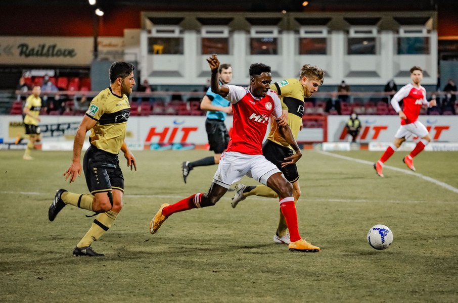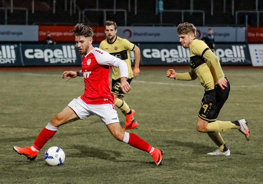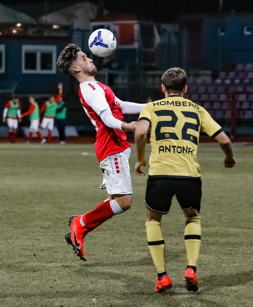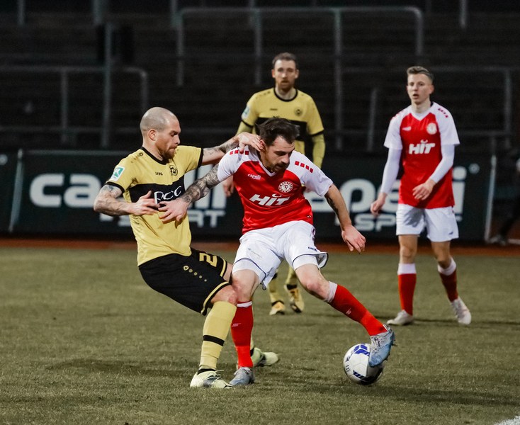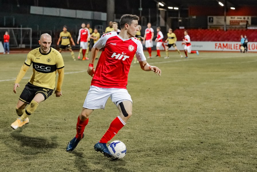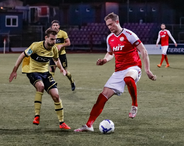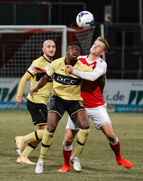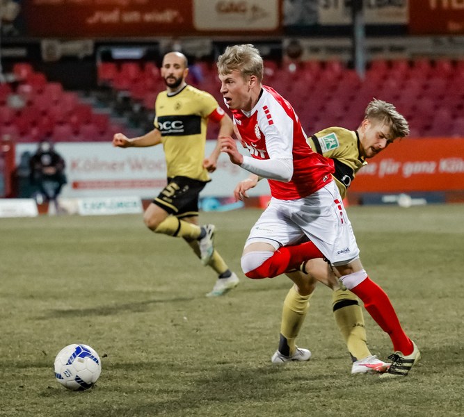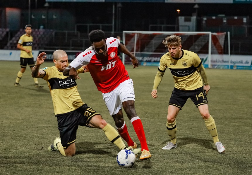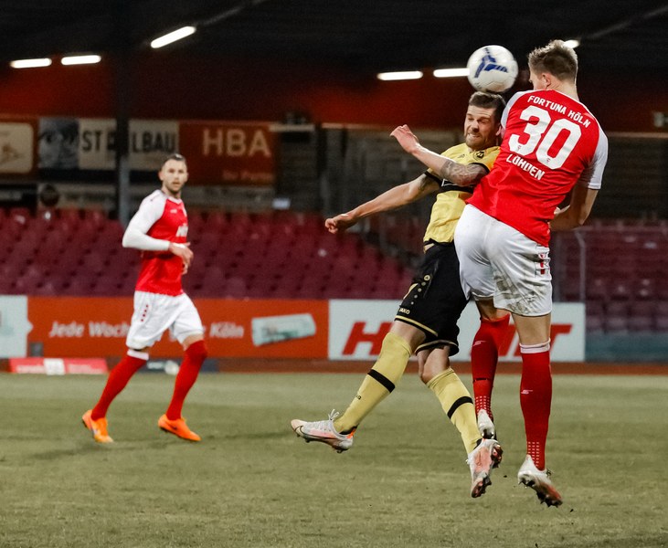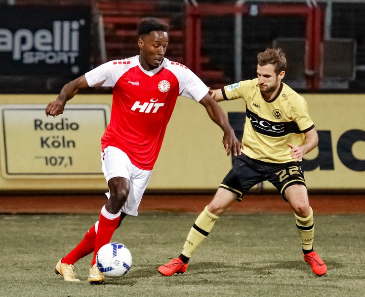 Im Gegensatz zum letzten Pflichtspiel nahm Trainer Alexander Ende vier Veränderung in der Startformation vor. Poggenberg, Itter, Kegel und Ubabuike rotierten in die erste Elf. Dafür nahmen Rumpf, Najar und Hölscher auf der Bank Platz, Prokoph stand nicht im Kader.Bereits nach drei Minuten näherten sich die Fortunen erstmals dem Homberger Tor. Dan-Patrick Poggenberg brachte von der linken Seite eine Flanke scharf vor das Tor, doch ein Homberger Verteidiger konnte per Kopf klären. Die Anfangsminuten gestalteten sich wie erwartet. Die Fortuna lag über weite Strecken in Ballbesitz und versuchte die gutstehenden Homberger Defensive zu durchdringen. In der 10. Minute kamen die Gäste vom Duisburger Rheindeich erstmals zum Abschluss. Nach einem Einwurf brachte Said Harouz den Ball erst in den Sechzehner, in dem es zu Tumulten kam, ehe ein weiterer Homberger den Ball am linken Pfosten verzog. In der 15. Minute nahm es Innenverteidiger Lanius etwas zu genau und traf nach Ecke von Kegel nur den Querbalken. Nach und nach kamen die Duisburger besser ins Spiel und kamen gleich zu mehreren Chancen. Nach einer Freistoßflanke in der 18. Minute flog der Ball erneut links am Tor vorbei. Nur eine Minute später wurde Ahmad Jafari mit einem langen Ball auf die Reise geschickt, doch Jannik Löhden war hellwach und klärte zur Ecke. In der Folge kam es zu weniger Strafraumszenen, da sich der Ball vermehrt im Aufbauspiel der Fortuna befand, jedoch nicht das letzte Drittel eindringen konnte. Nach 28 gespielten Minuten war es erneut Dominik Lanius nach einer Ecke von Maik Kegel, der den Ball auf das Tor, genauer gesagt auf das Tornetz brachte. Nun kam die Fortuna dem Führungstreffer näher. Über die linke Seite flankte Poggenberg den Ball in Richtung Sechzehner und fand in Ochojski einen Abnehmer. Dieser köpfte den Ball an das Lattenkreuz, Schiedsrichter Engelmann hatte jedoch ohnehin schon auf Abseits entschieden (30. Minute). Nach einem taktischen Foul an der Außenlinie, auf Höhe der Mittellinie sieht Nico Brandenburger zurecht die gelbe Karte. Bei seinem Einsatz zog sich der Mittelfeldmann allerdings ebenfalls eine blutige Nase, nach einem Ellbogenstoß seines Gegenspielers Said Harouz zu, welcher daraufhin ebenfalls die gelbe Karte sah (33. Minute). Der Freistoß im Anschluss an die Situation sorgte nochmals für Gefahr vor dem Tor von Kevin Rauhut, denn der 2,02 große Innenverteidiger Cottrell Ezekwem kam unbedrängt zum Kopfball doch verpasste den Kölner Kasten recht deutlich. Kurz darauf wäre es fast der Führungstreffer gewesen. Owusu drang über die rechte Seite durch und brachte den Ball flach und gefährlich in den 16er, doch Francis Ubabuike rutschte knapp am Ball vorbei und so gab es Torabstoß für die Homberger. Nur wenige Minuten vor der Pause sorgte Maik Kegel mit einer verunglückten Flanke für Gefahr vor dem Tor des Homberger Keepers Gutkowski. Dieser passte allerdings gut auf und parierte zu einer weiteren Ecke für die Hausherren (41. Min). Da auch in den restlichen Minuten bis zum Halbzeitpfiff nichts wesentliches mehr passierte, ging es verdient mit einem torlosen Remis in die Pause. Der angeschlagene Nico Brandenburger blieb in der Halbzeit in der Kabine und wurde durch Timo Hölscher ersetzt. In der 52. Minute wurde Hamza Salmans Dribbling auf Höhe der Sechzehnerkante mit einem Foul gestoppt. Maik Kegel trat zum fälligen Freistoß an, traf jedoch nur die Homberger Mauer. Über den eingewechselten Hölscher gelangte der Ball nach einem starknen Dribbling auf die linke Seite, wo sich Poggenberg stark im Laufduell durchsetzte, dessen Flanke kam aber nicht wirklich an, aber Fortuna startete damit auch in die zweite Hälfte mit einer guten Aktion (56. Minute). Die Gäste aus Homberk kamen im Gegnzug zu einer risen Chance: Harouz stand nach einem Steilpass plötzlich alleine vor Rauhut und schießt dann ohne Druck meterweit am Tor vorbei. Die Fortuna hatte zu diesem Zeitpunkt großes Glück, dass der Rheindeicher eine solche zwingende Möglichkeit liegen lies. Dann wechselte Cheftrainer Alexander Ende doppelt. Er nahm Ubabuike und Itter vom Platz und schickte dafür Najar und Isobe auf das Spielfeld (62. Minute). Owusu wurde dann von Hölscher per Chip sehr schön im gegnerischen 16er in Szene gesetzt, sein Schuss aus der Drehung heraus wurde von den Hombergern abgeblockt unnd brachte die nächste Ecke ein. In seinem ersten Spiel für die Fortuna fiel Isobe sofort durch seine Aktionen auf. In der 69. Minute drehte er sich um seine eigene Achse an gleich zwei Gegenspielern vorbei, sein Abschluss wurde aber geblockt. Löhdens Nachschuss landete dann in Torwart Gutkowskis Armen. Anschließend kam Rumpf für Kegel in die Partie (74. Minute). Die Fortuna hatte jetzt deutlich mehr Ballbesitz und erspielte sich in der 75. Minute eine weitere riesige Chance . Nach einem Einwurf setzte sich Najar erst an der Außenlinie durch, drang dann bis zur Torauslinie hervor und lässt mehrer Gegenspieler stehen. Dann legte er den Ball quer auf Isobe, der alles richtig macht und den Ball zunächst am Torwart vorbeilegt und den Ball dann aus einem Meter an den Pfosten setzte. Das zweite Mal Aluminium Glück für die Gäste aus Homberg. Auch die Duisburger kamen noch einmal zu einem aussichtsreichen Vorstoß, dieser wurde unfair von dem zuvor eingewechselten Rumpf gestoppt, was einen Freistoß nach sich zog. Die Gäste vom Duisburger Rheindeich nutzen in der Schlussphase jede Möglichkeiten, um Zeit von der Uhr zu nehmen und ließen sich bei all ihren Aktionen reichlich Zeit. Hölscher sah dann noch aufgrund eines taktischen Fouls zurecht die gelbe Karte (83. Minute) .Die Homberger standen sehr defensiv und ließen der Fortuna kaum Lücken. Löhden wurde vom Innenverteidiger zum Stürmer befördert, um vor dem gegnerischen Tor hoch angespielt zu werden, doch es kamen kaum verwertbare Flanken auf den großen Spieler. Am Ende trennten sich der VfB Homberg und Fortuna Köln 0:0 unentschieden und teil