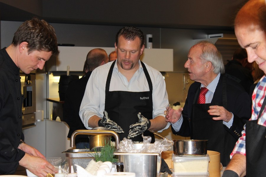 „Bulthaup am Mediapark“ bot der Fortuna dabei den perfekten Rahmen für ein außergewöhnliches Kochevent: Im alten Eichamt von Köln, hat Tobias Vianden, Geschäftsführer von „bulthaup am Mediapark“, nunmehr seit vier Jahren seine Räumlichkeiten gefunden. „Wir freuen uns einem namhaften Verein wie Fortuna Köln mit seinen Partnern einen besonderen Abend bieten zu können. Selten haben wir eine so harmonische Gruppe erlebt, die sich sofort zum gemeinsamen Kochen zusammen gefunden hat“, freute sich Vianden über einen gelungenen Abend.