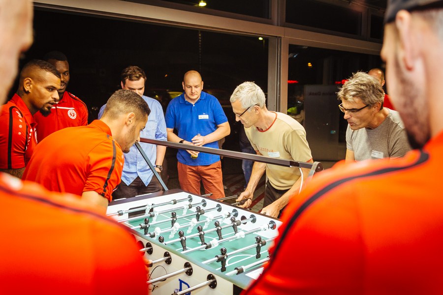 Dieses Jahr nahmen insgesamt 31 Teams an dem Kickerturnier teil. Die ersten vier Teams bekamen anschließend diverse Preise von den Fortuna-Profis Kegel, Dahmani und Co. überreicht.
