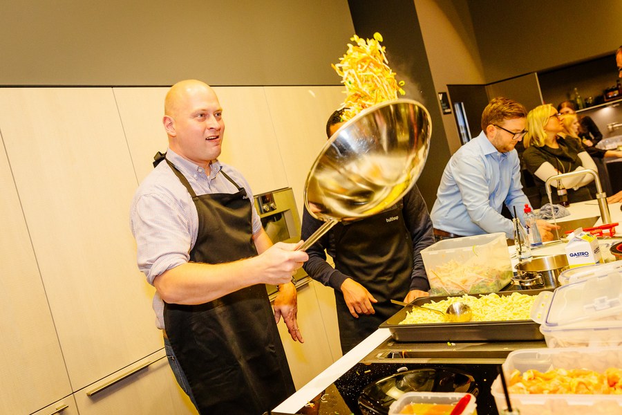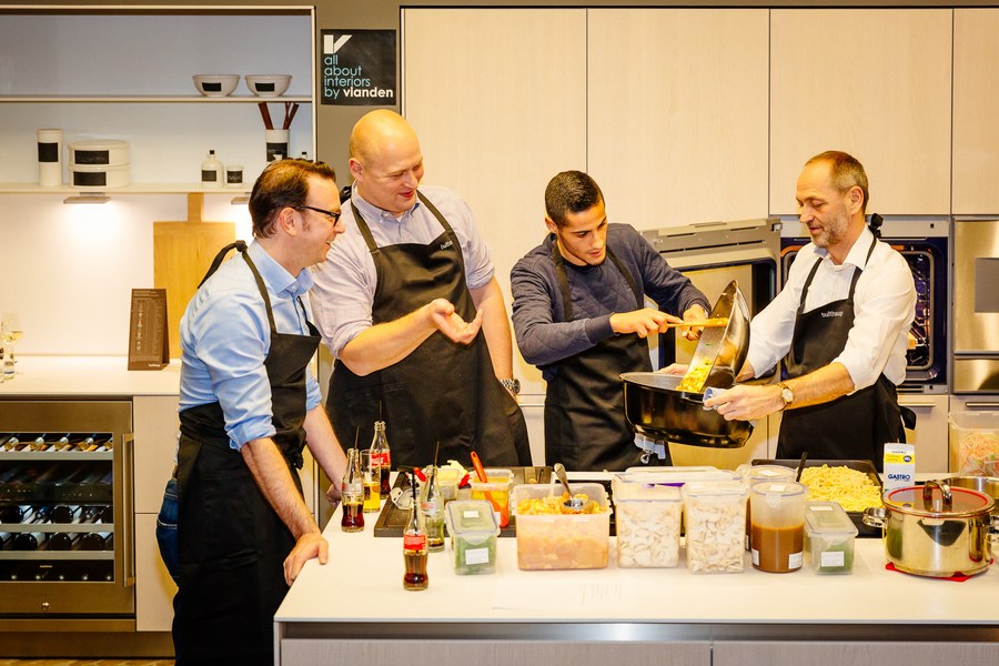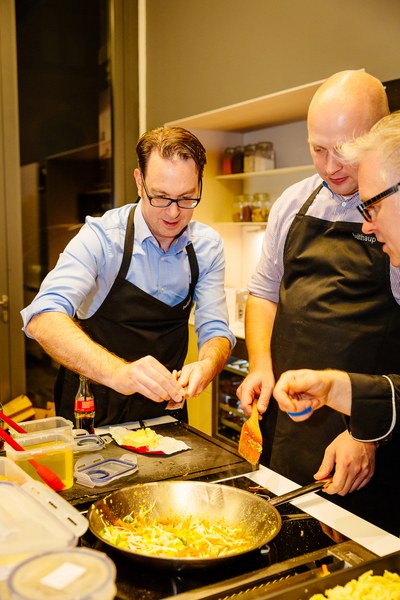 Gemeinsam kochten die Gäste in drei Gruppen ein Drei-Gänge-Menü mit jeweils einem Profi an ihrer Seite. Durch das gemeinsame Kochen wuchs das Fortuna-Netzwerk weiter näher zusammen und die Partner konnten sich mal abseits eines Spieltags mit anderen Partnern und den Fußballprofis austauschen.