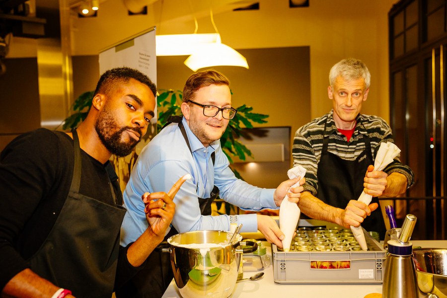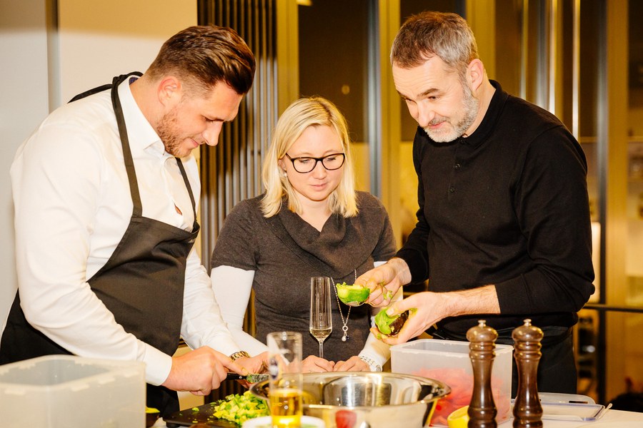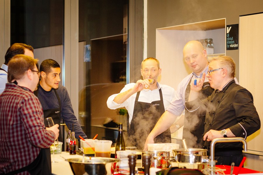 Kochevent bei bulthaup am Mediapark - Alibaz, Dahmani und Kwame kochen mit Partnern