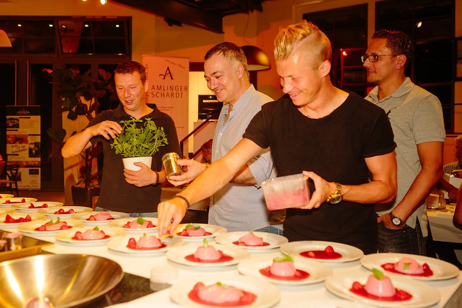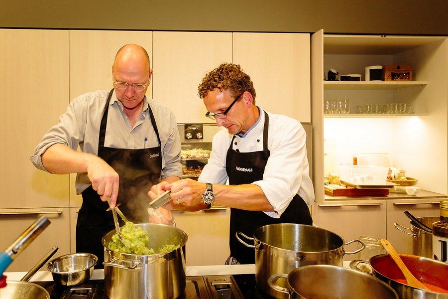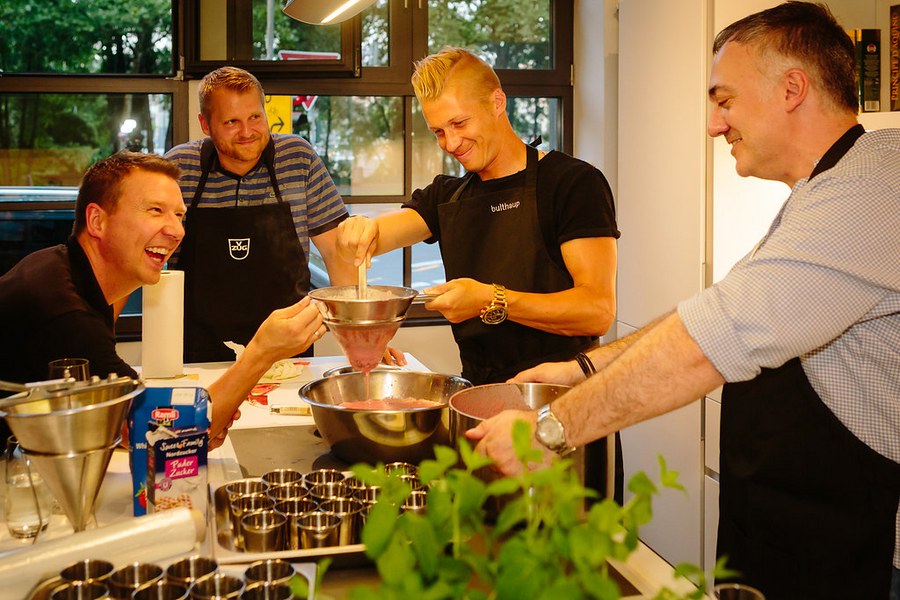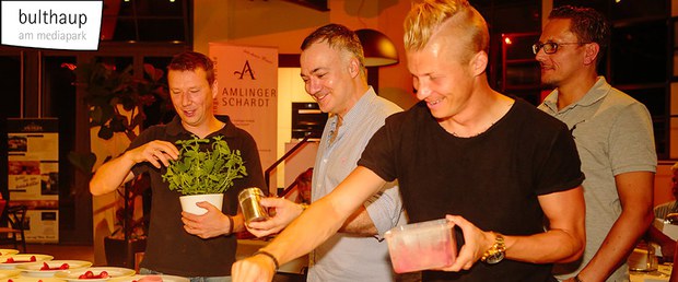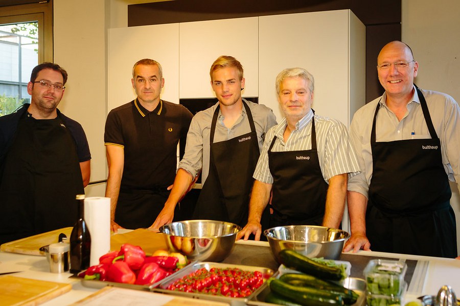 Kochevent bei bulthaup am Mediapark - Boss, Kessel und Röcker kochen mit Fortuna-Partnern