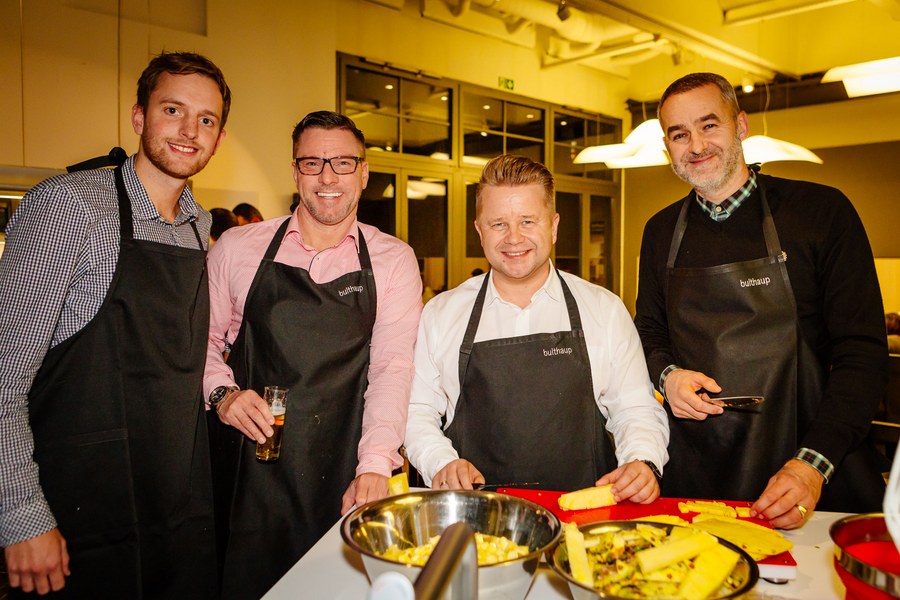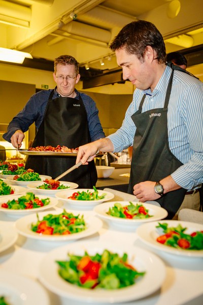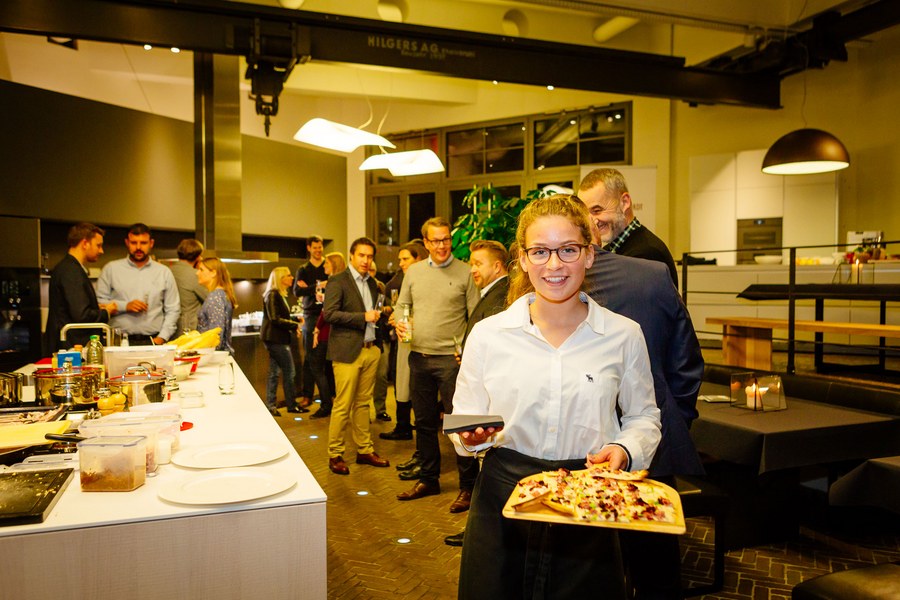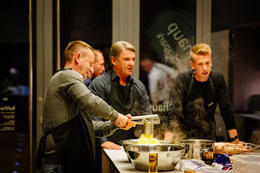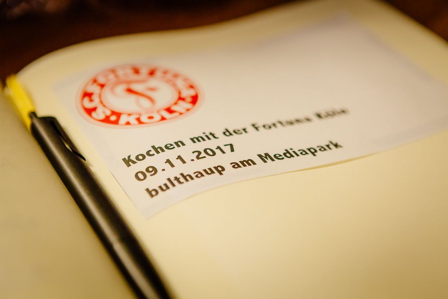 Gemeinsam kochten die knapp 30 Gäste in drei Gruppen ein Drei-Gänge-Menü. Dabei gingen auch die beiden Fortunen Brandenburger und Uaferro helfend zur Hand. Durch das gemeinsame Kochen wuchs das Fortuna-Netzwerk weiter näher zusammen und die Partner konnten sich abseits eines Spieltags mit anderen Partnern und den Fußballprofis austauschen. Das Event bei bulthaup am Mediapark fand insgesamt schon zum elften Mal statt und wurde von Koch Jörg Hoffmann geleitet.