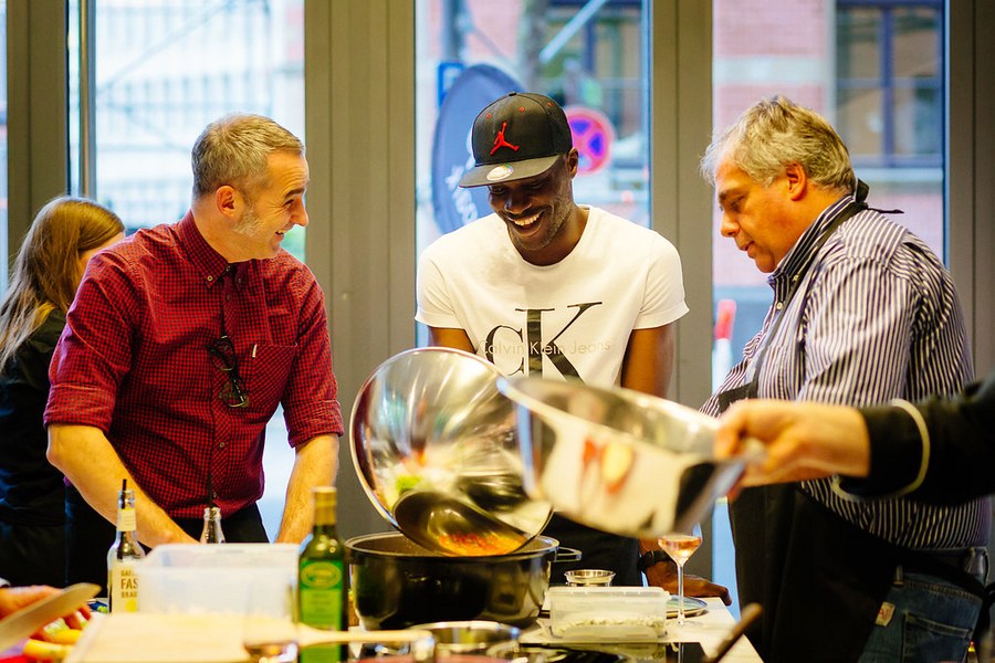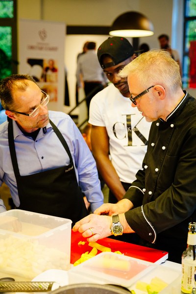 Gemeinsam kochten die Gäste in drei Gruppen ein Drei-Gänge-Menü mit jeweils einem Profi an ihrer Seite. Durch das gemeinsame Kochen wuchs das Fortuna-Netzwerk weiter näher zusammen und die Partner konnten sich mal abseits eines Spieltags mit anderen Partnern und den Fußballprofis austauschen.