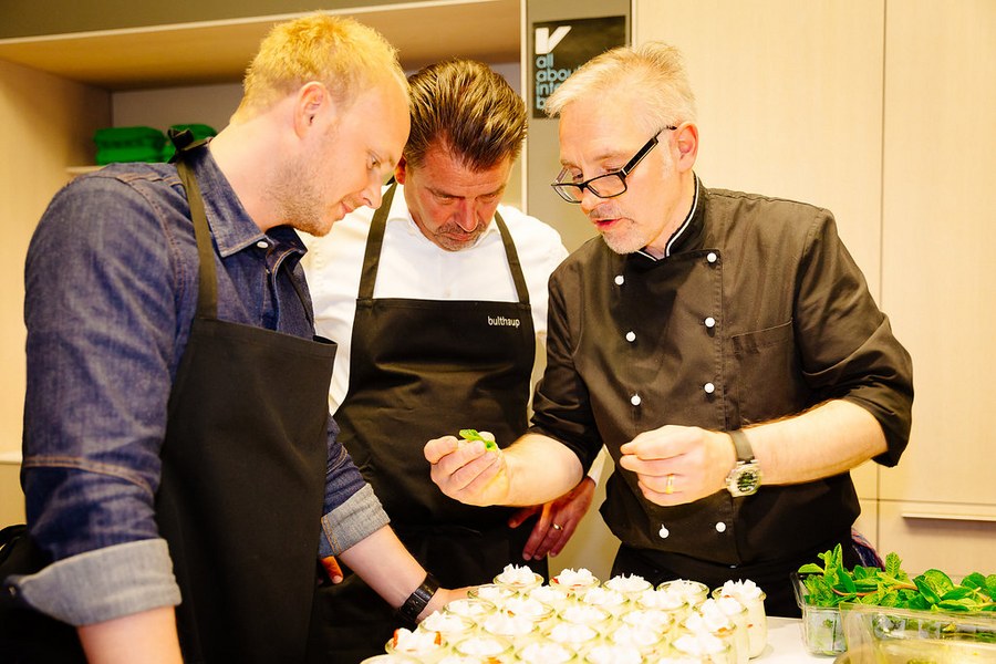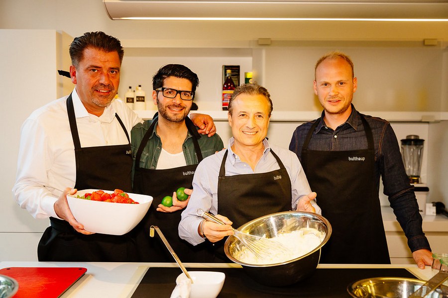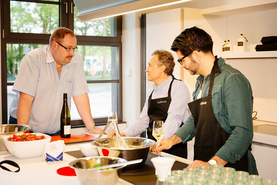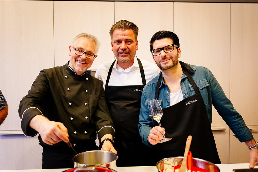 Kochevent bei bulthaup am Mediapark - Hörnig, Mimbala und Osebold kochen mit Partnern
